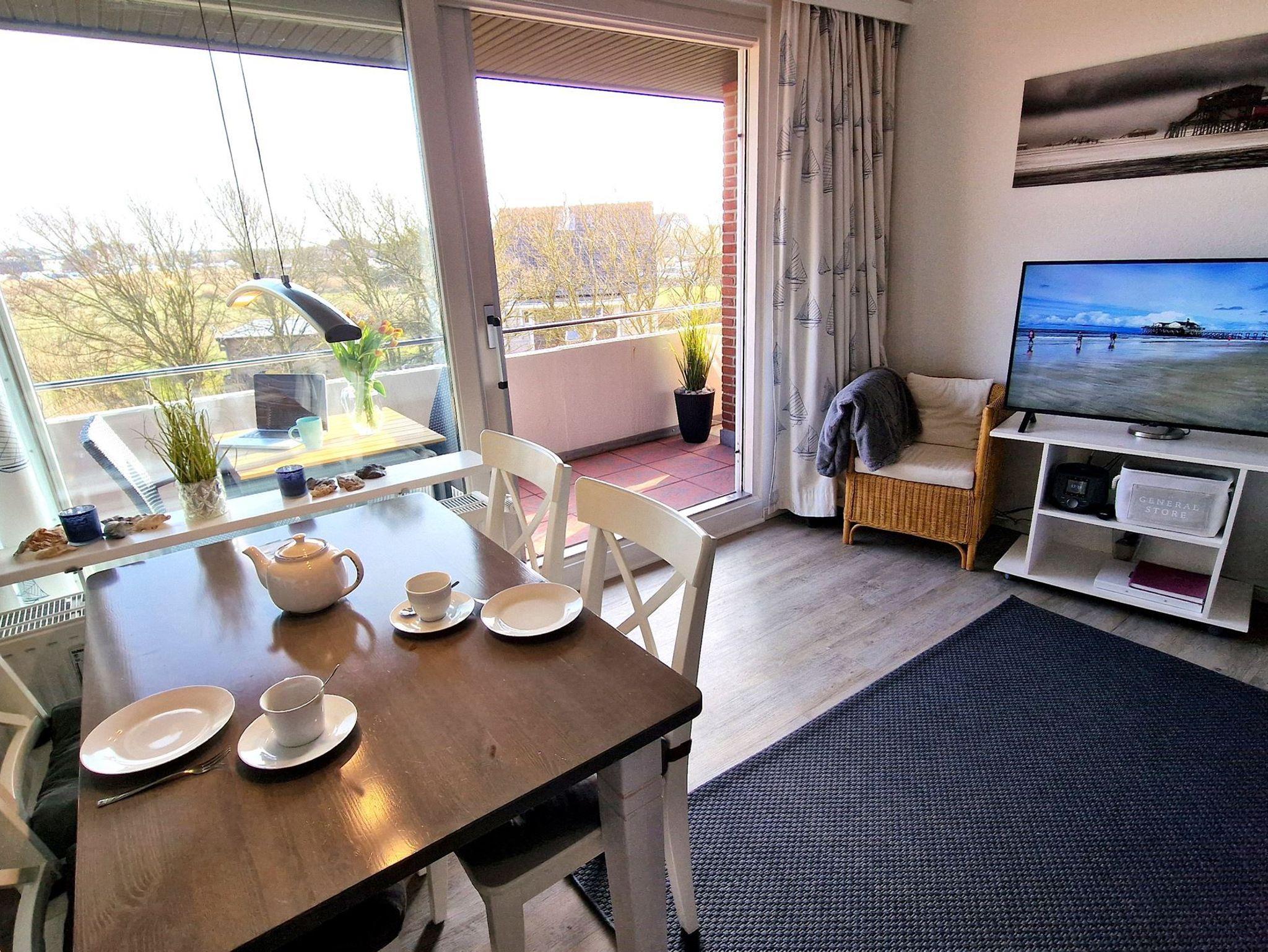 In der 2-Zimmer-Nichtraucherwohnung Haus Hooge Nr. 03 im 1. OG können sich bis zu 2 Gäste davon überzeugen. Vom sonnigen Süd-Balkon haben Sie einen schönen Blick über die Wiesen im Ortsteil Ording. Die neue, schicke Küchenzeile mit Cerankochfeld wird Ihnen beim Kochen viel Freude bereiten. Nachts spannen Sie im Doppelbett im Schlafzimmer aus. Pkw-Stellplatz auf dem Grundstück, Nr. 3