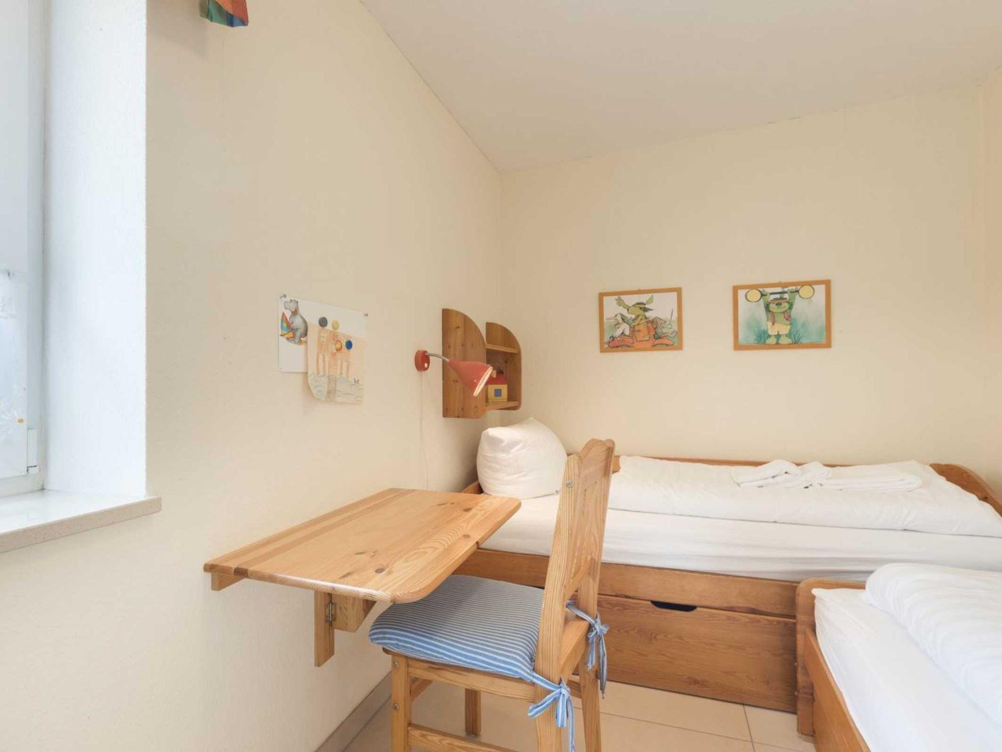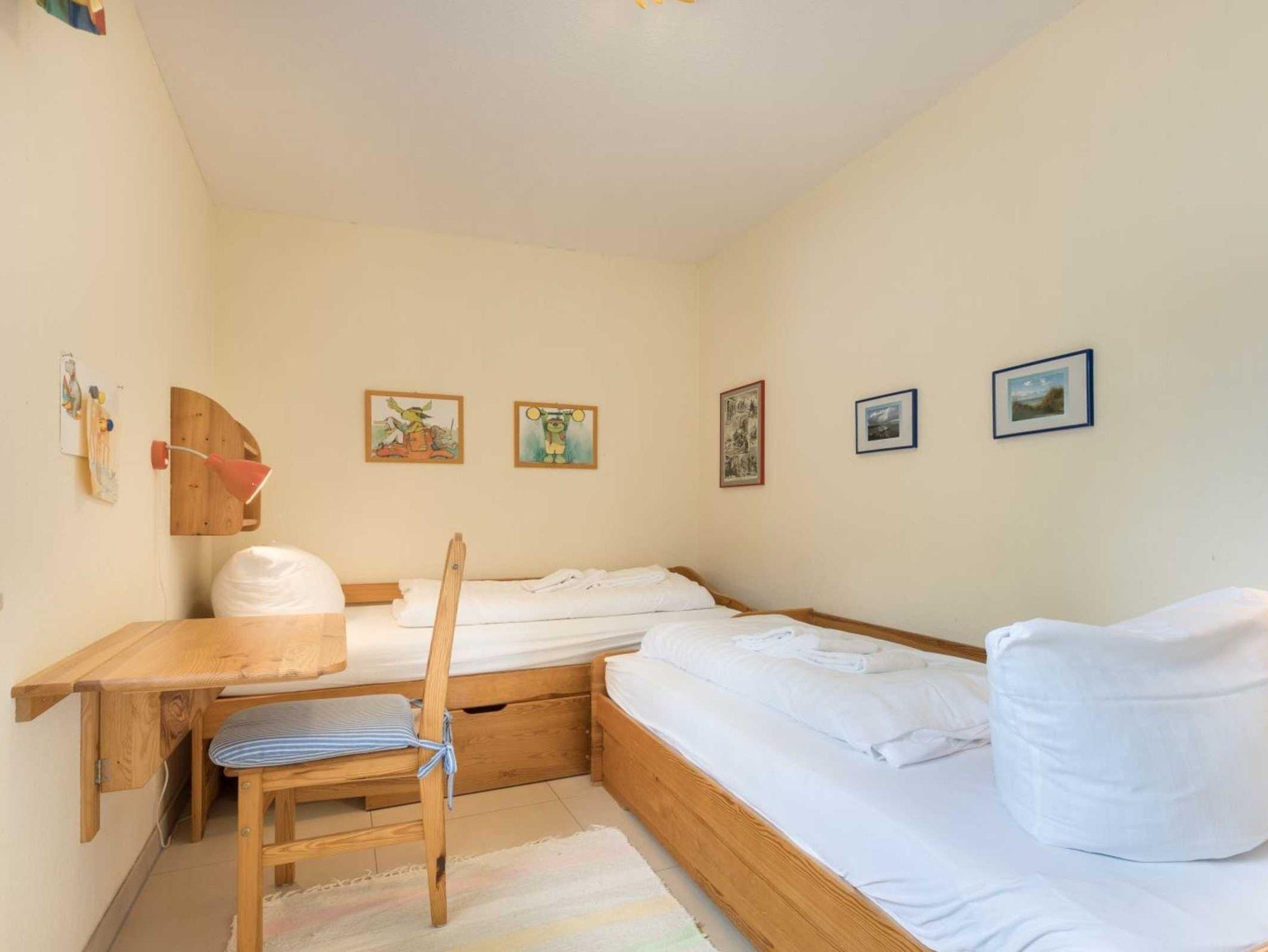 2. Schlafzimmer mit 2 Einzelbetten (je 90x200cm), Kleiderschrank und kleinem Schreibstisch mit Stuhl.