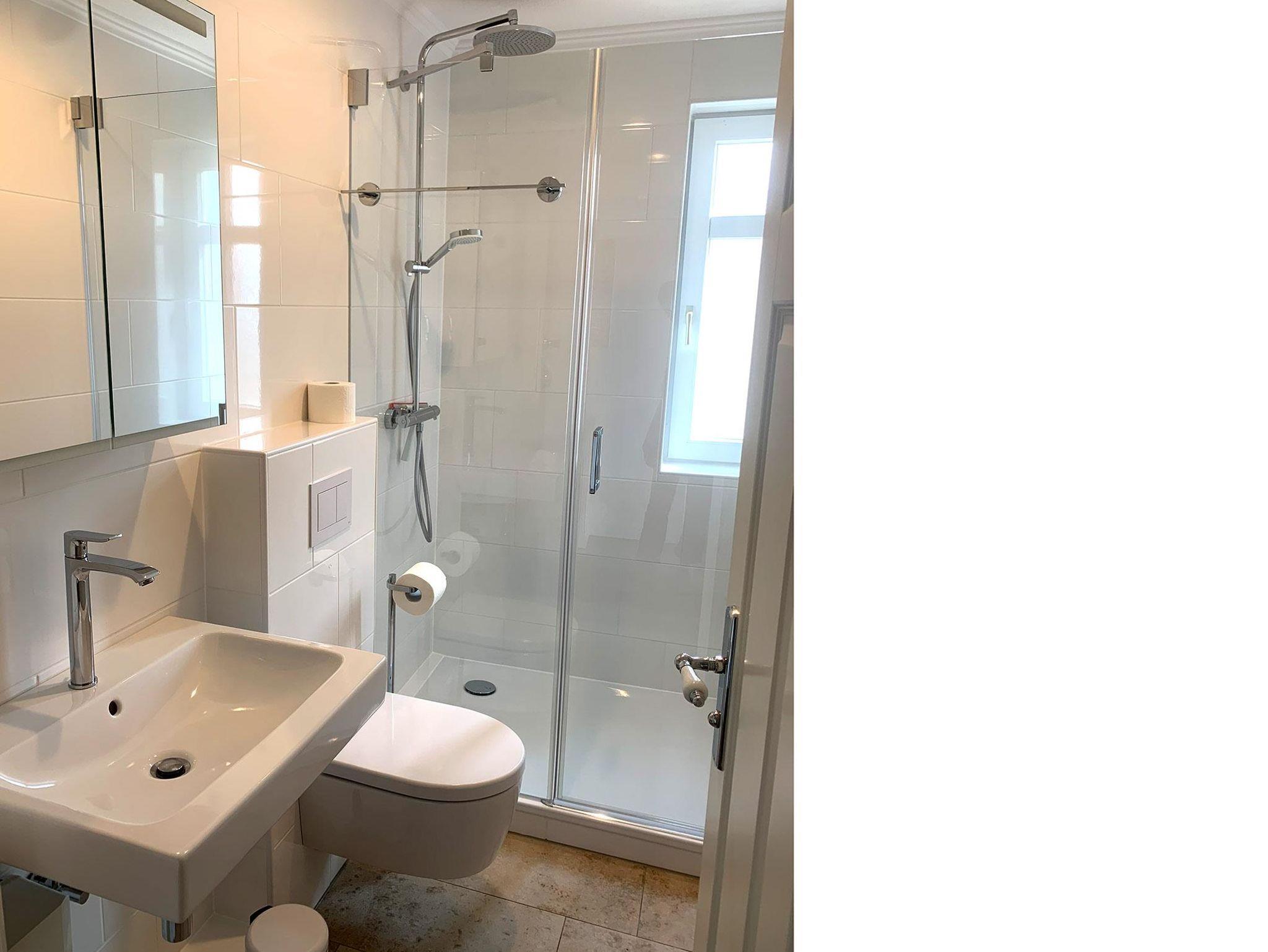 Bad: Dusche, Duschkabine, Waschbecken, WC