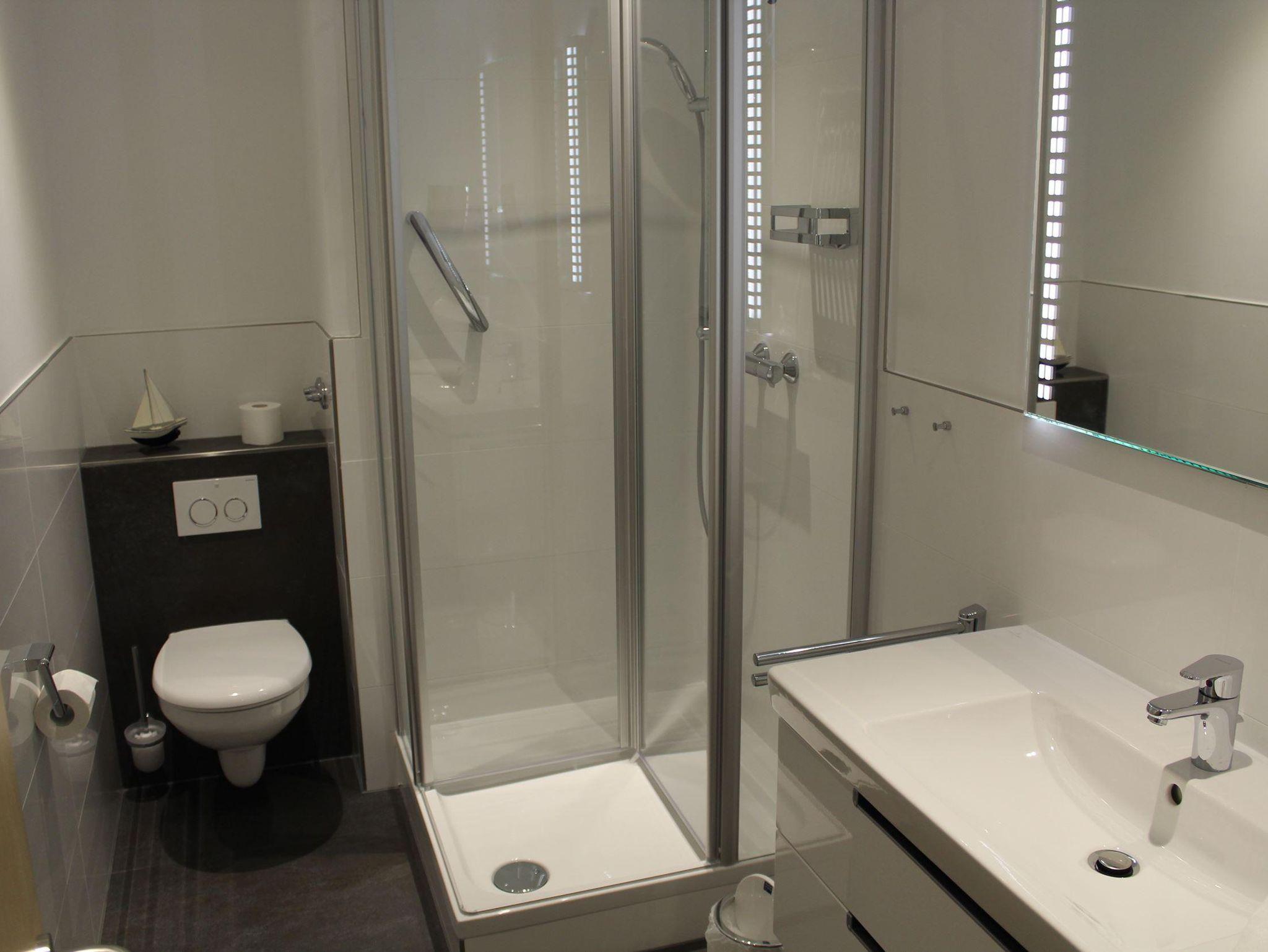 Schlafraum mit 2 Einzelbetten, Wohn-Schlafraum mit Schlafsofa (Liegefläche 1,60x2,00m), PVC-Fußboden, Sitzecke, Essecke, Küchenzeile mit Mikrowelle, Dusche/WC, Kabel-TV, Durchwahltelefon, Balkon, PKW-Platz-Nr. 52, Aufzug und Fahrradkeller.