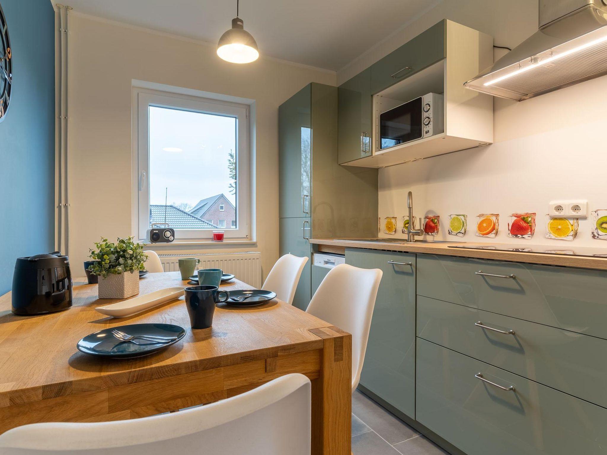 Die Ferienwohnung ist für maximal 4 Personen geeignet und liegt im 1. OG . Zur Austattung gehören TV, Radio, Küche, Spülmaschine, Mikrowelle, Kühlschrank, Gefrierfach / -Schrank, Toaster, Dusche, Balkon.
