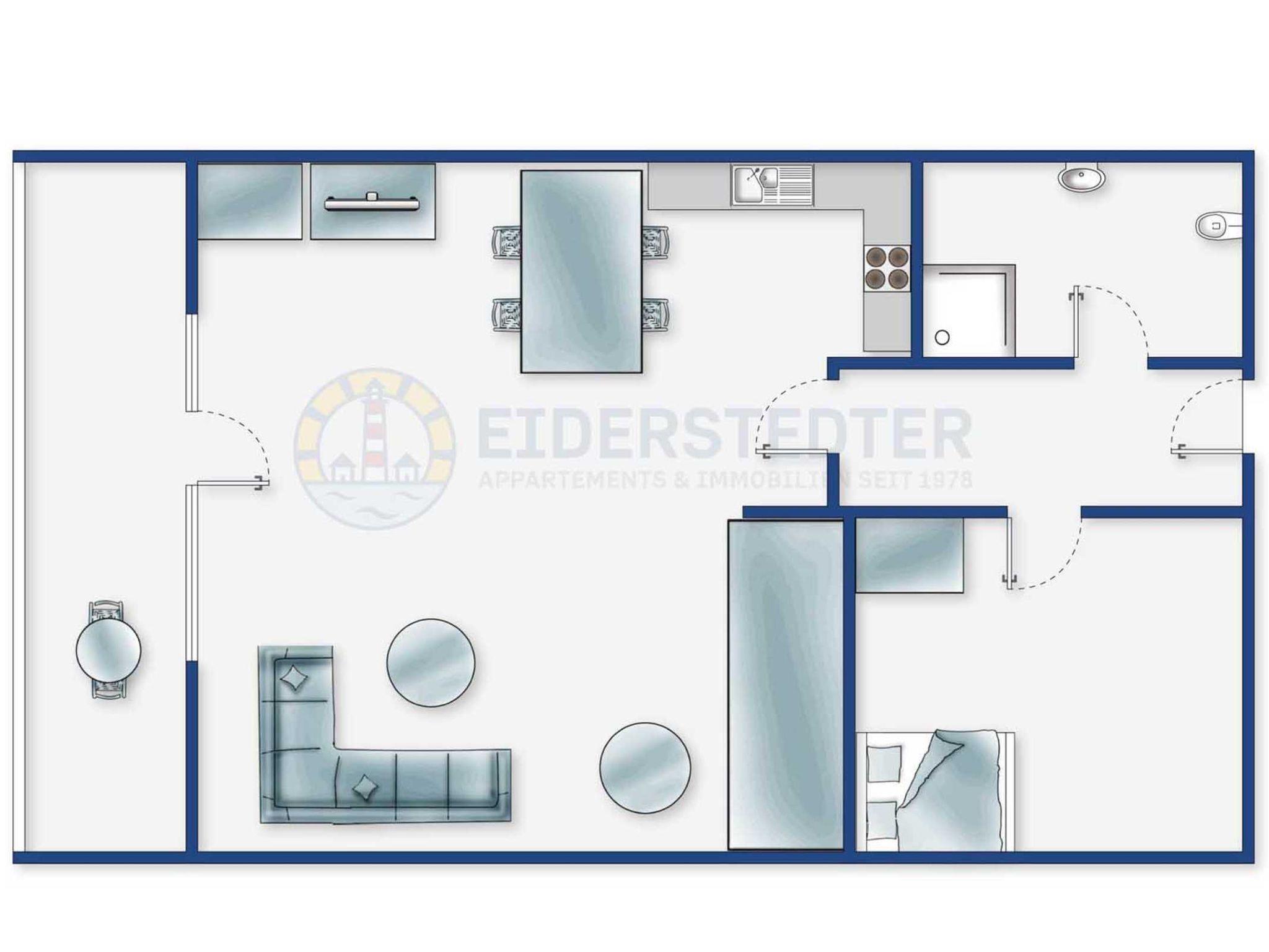Exklusive 2-Zimmer-Ferienwohnung Frische Brise im Haus Atlantic mit ca. 41 qm auf 1 Ebene (3. OG, mit Fahrstuhl) für bis zu 4 Personen (Wohlfühlbelegung: max. 2 Erwachsene). Gute Lage im Ortsteil Bad in St. Peter-Ording. Von hier aus erreichen Sie den Strand, das Kurzentrum und das Dorfzentrum in jeweils gut 15 Minuten zu Fuß. In der Nähe einer Bushaltestelle gelegen (mit Kurkarte kostenlos).