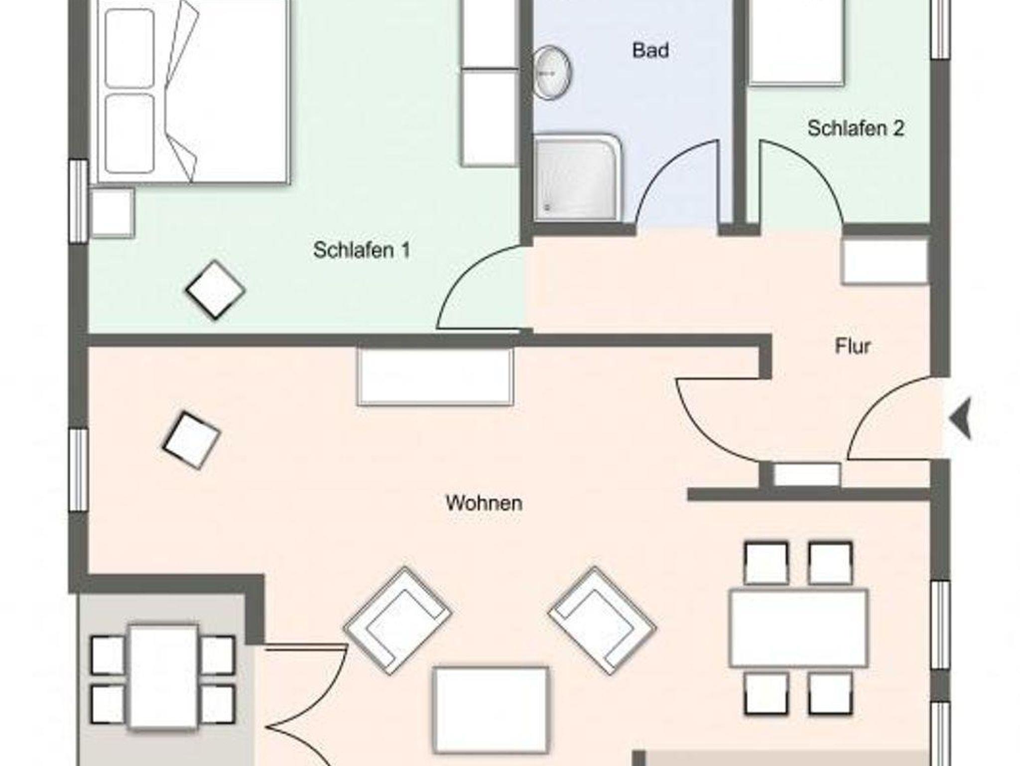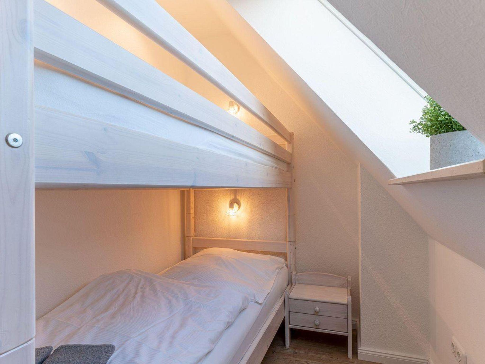 Das erste Schlafzimmer mit 2 Nachttischen, Kleiderschrank und Stuhl verfügt über ein Doppelbett (2,00 x 1,80 m). Ein weiteres Zimmer besteht aus einem Nachttisch und Etagenbett (2 Einzelbetten). Das Badezimmer bietet Ihnen eine Dusche, Regal, Waschbecken, Wäscheständer und WC. Zur Unterhaltung dient ein Sat-TV Flachbildschirm, Radio sowie WLAN (inklusive).