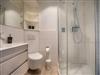 Badezimmer (Duschbad) mit Dusche, WC, Handtuchwärmer und Föhn.