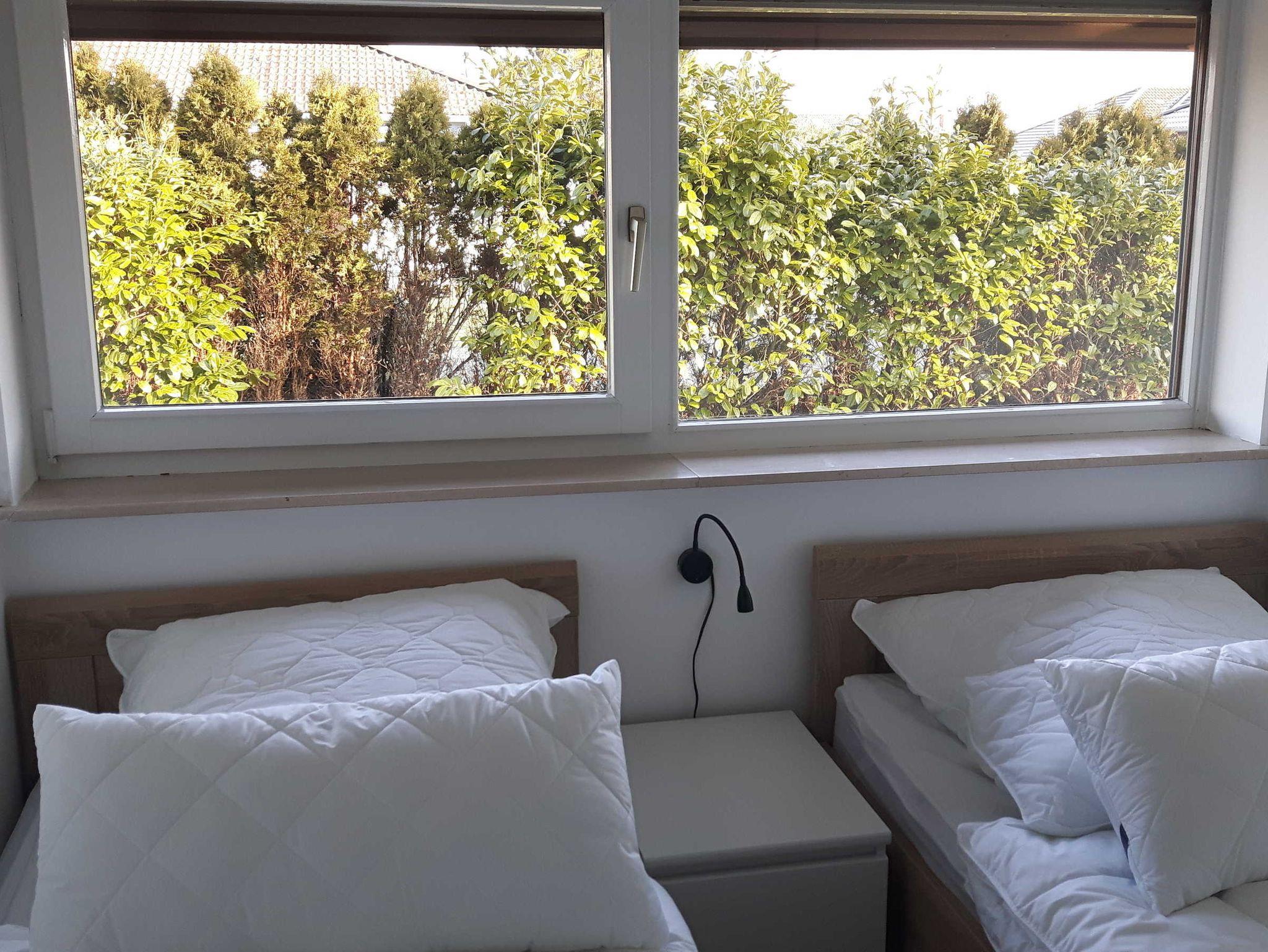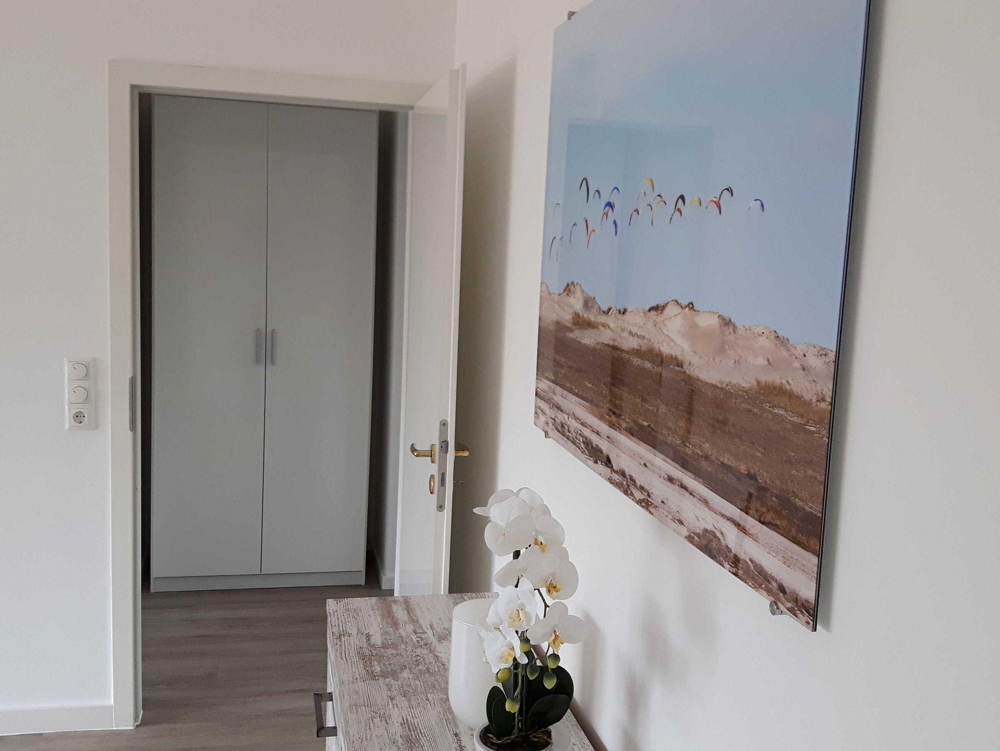 Modern und geschmackvoll eingerichtete helle Doppelhaushälfte. Zwei separate Schlafzimmer (das größere mit Doppelbett 160x200cm und das kleinere mit zwei Einzelbetten von je 90x200cm) mit großen Eckschränken. Wohnzimmer mit einem Dauerschlafsofa (mit Lattenrost und innenliegender Matratze von 160x200cm). Flat-TV´s mit Satellitenanschluss im großen Schlafzimmer (43 Zoll) sowie im Wohnzimmer (55 Zoll). W-LAN ohne Gebühr. Separate, modern eingerichtete voll ausgestattete Küche mit allen Elektoreinrichtungen (Kühlschrank mit Tiefkühlfach, Geschirrspüler, selbstreinigender Backofen, Induktionsherd mit vier Kochplatten, elektrischer Wasserkocher, Kaffeefiltermaschine, Toaster, Mixer, Handrührgerät etc.) plus Esstisch für bis zu sechs Personen. Duschbad mit großer Duschkabine mit Glasabtrennung sowie Waschmaschine. Alle Räume sind mit hellem, unempfindlichem Designboden ausgestattet. Wohn- und Schlafräume mit dimmbarem Licht. Elektrische Rollläden sichern alle Räume (einschließlich der Eingangstür, falls gewünscht) und verdunkeln die Zimmer. Ferner stehen Staubsauger, Bügelbrett/Bügeleisen und Fön zur Nutzung bereit! Wäschespinne und Wäscheständer im Außenbereich. Gartenterrasse mit zwei Liegen, sechs Gartenstühlen und großem Esstisch sowie Holzkohlegrill.