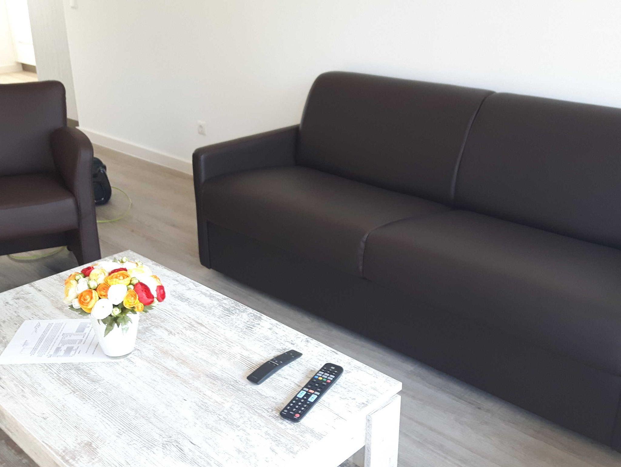 Wohnzimmer mit einem Dauerschlafsofa (mit innenliegender Matratze von 160x200cm).