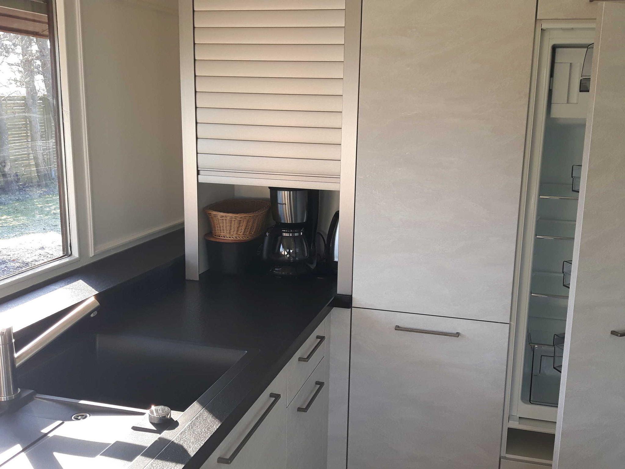 Flat-TV´s mit Satellitenanschluss im großen Schlafzimmer (43 Zoll) sowie im Wohnzimmer (55 Zoll). W-LAN ohne Gebühr. Separate, modern eingerichtete voll ausgestattete Küche mit allen Elektoreinrichtungen (Kühlschrank mit Tiefkühlfach, Geschirrspüler, selbstreinigender Backofen, Induktionsherd mit vier Kochplatten, elektrischer Wasserkocher, Kaffeefiltermaschine, Toaster, Mixer, Handrührgerät etc.) plus Esstisch für bis zu sechs Personen. Ebenerdiges Duschbad mit großer Duschkabine mit Glasabtrennung sowie Waschmaschine. Alle Räume sind mit hellem, unempfindlichem Designboden ausgestattet. Wohn- und Schlafräume mit dimmbarem Licht. Elektrische Rollläden sichern alle Räume (einschließlich der Eingangstür, falls erwünscht) und verdunkeln die Schlafzimmer. Ferner stehen Staubsauger, Bügelbrett/Bügeleisen und Fön zur Nutzung bereit! Wäschespinne und Wäscheständer im Außenbereich. Gartenterrasse mit zwei Liegen, sechs Gartenstühlen und großem Esstisch sowie Holzkohlegrill.