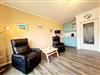 Zwei Couchsessel mit Flachbildfernseher und Radio lassen auch verregnete Tage schnell vergehen.