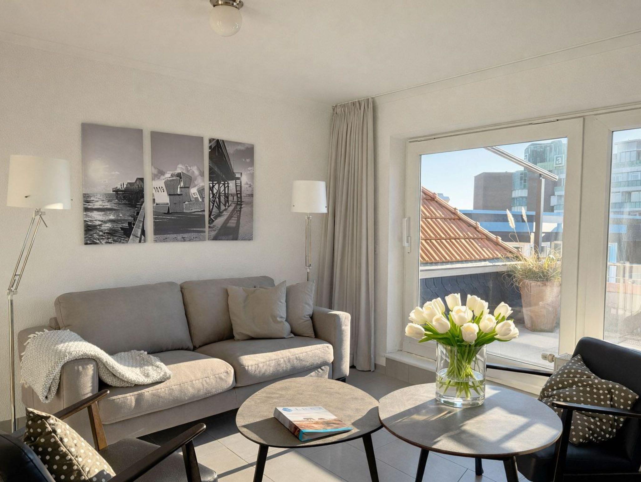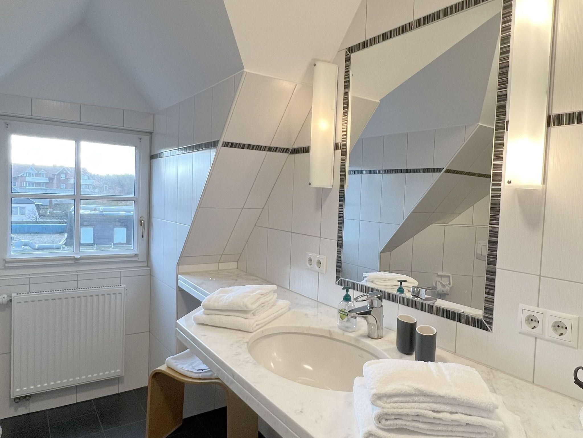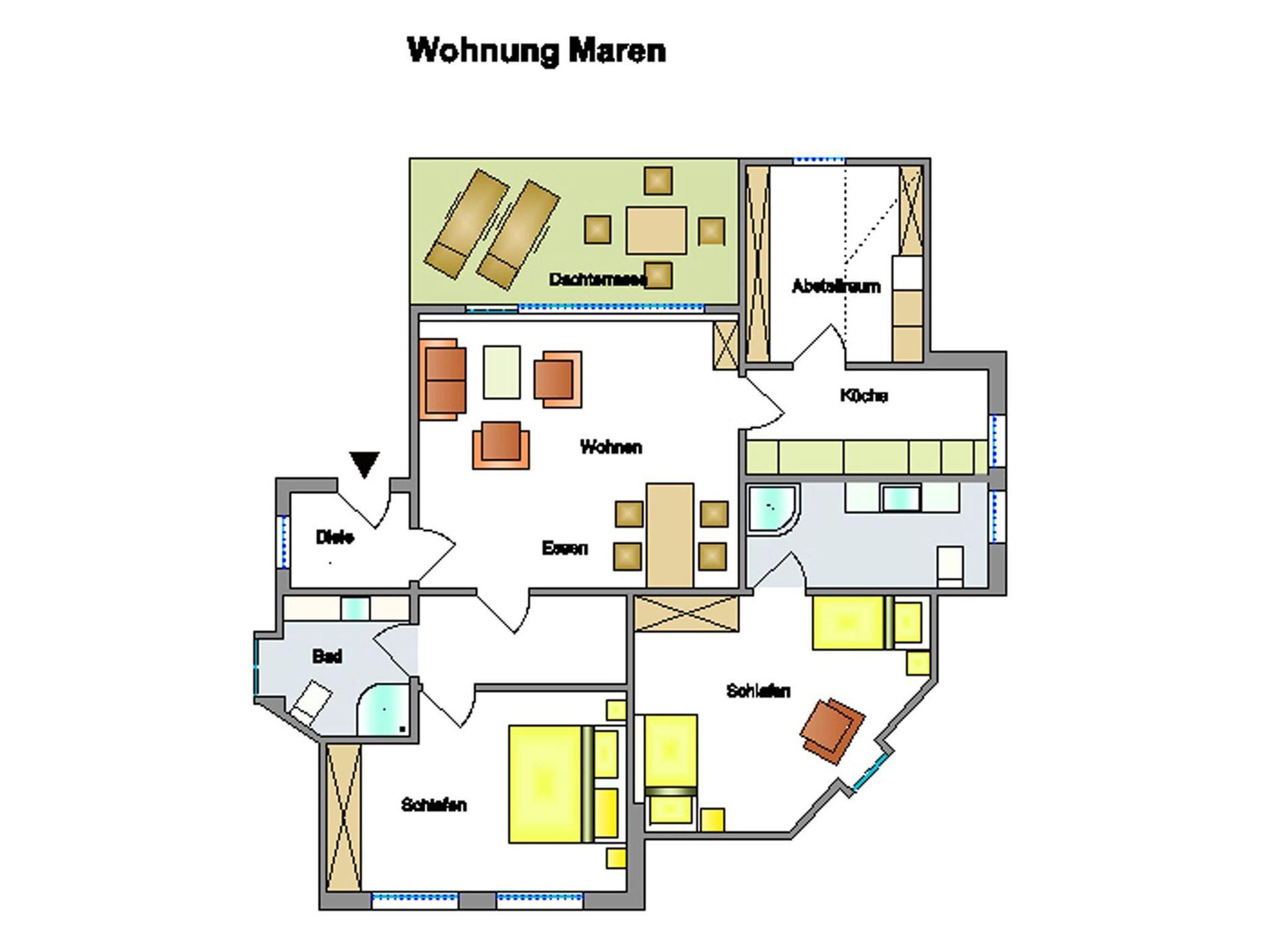 Die moderne, exklusive und mit 4 DTV Sternen ausgezeichnete Wohnung Maren liegt mitten im Ortsteil Bad, nahe der Seebrücke. Sie liegt im 2. Obergeschoss eines Geschäftshauses und verfügt über eine große Dachterrasse mit kleinem Meerblick. Mit ihren 80qm verteilt auf drei Zimmer haben Sie hier Platz für bis zu 4 Personen. Über den Eingangsbereich mit Garderobe betreten Sie das geräumige Wohnzimmer mit integrierter Essecke. Von dort kommen Sie auf die gemütliche Dachterrasse mit Strandkorb, Gartenmöbeln und einer Markise, die mit einer Fernbedienung gesteuert wird. Die Ferienwohnung ist mit viel Liebe, Geschmack und hochwertig eingerichtet. In der vollausgestatteten Küche mit Ceranfeld, Backofen, Mikrowelle und Spülmaschine macht das Kochen richtig Spaß. Der gute Gesamteindruck wird abgerundet durch zwei Schlafzimmer mit je einem Doppelbett und zwei Einzelbetten sowie zwei Duschbädern. Die zentrale Lage der Wohnung ermöglicht es Ihnen das Auto stehen zu lassen und den Ort zu Fuß zu erkunden. Für das leibliche Wohl ist gesorgt, denn Café´s und Restaurants sind in unmittelbarer Nähe.