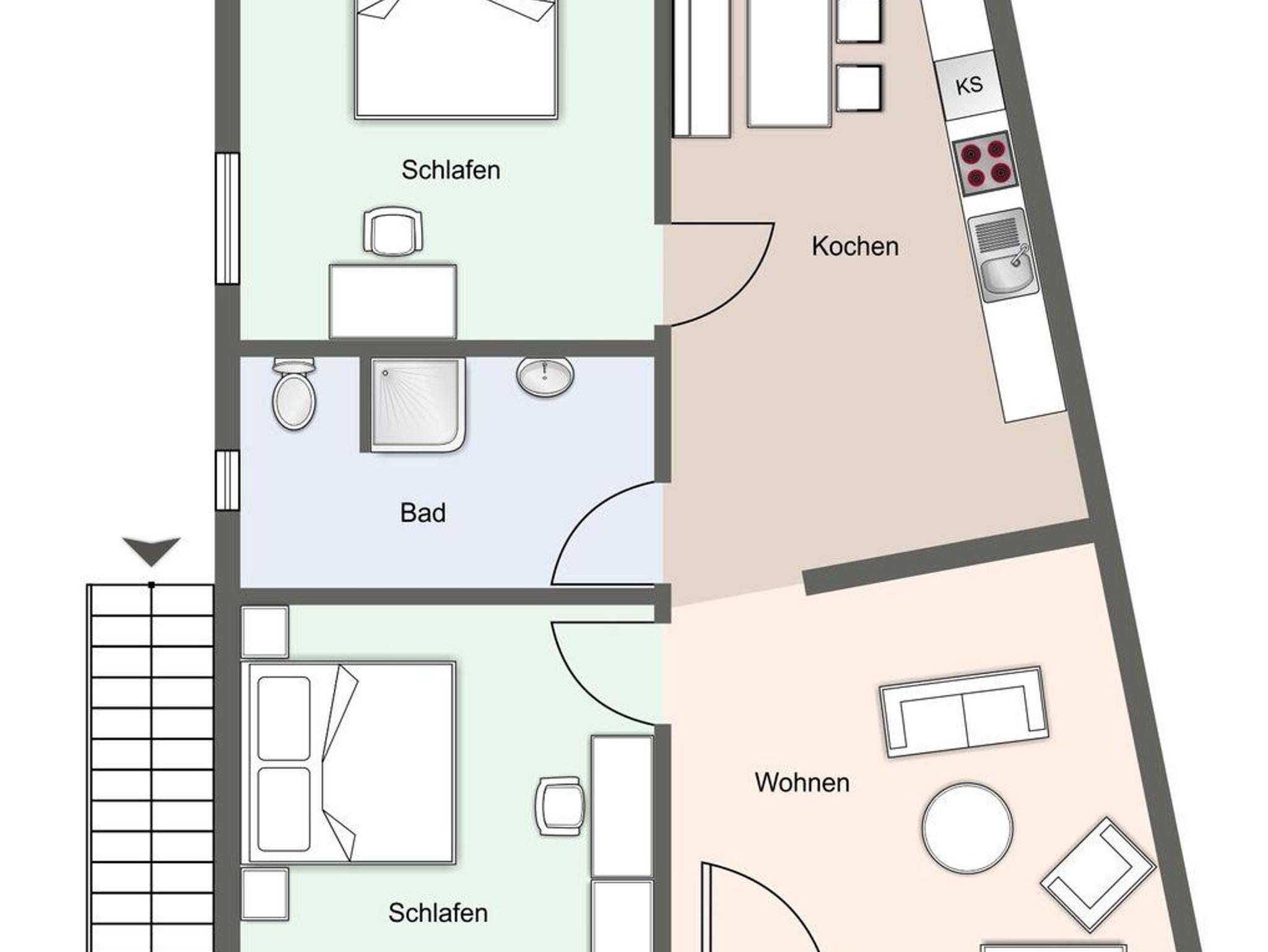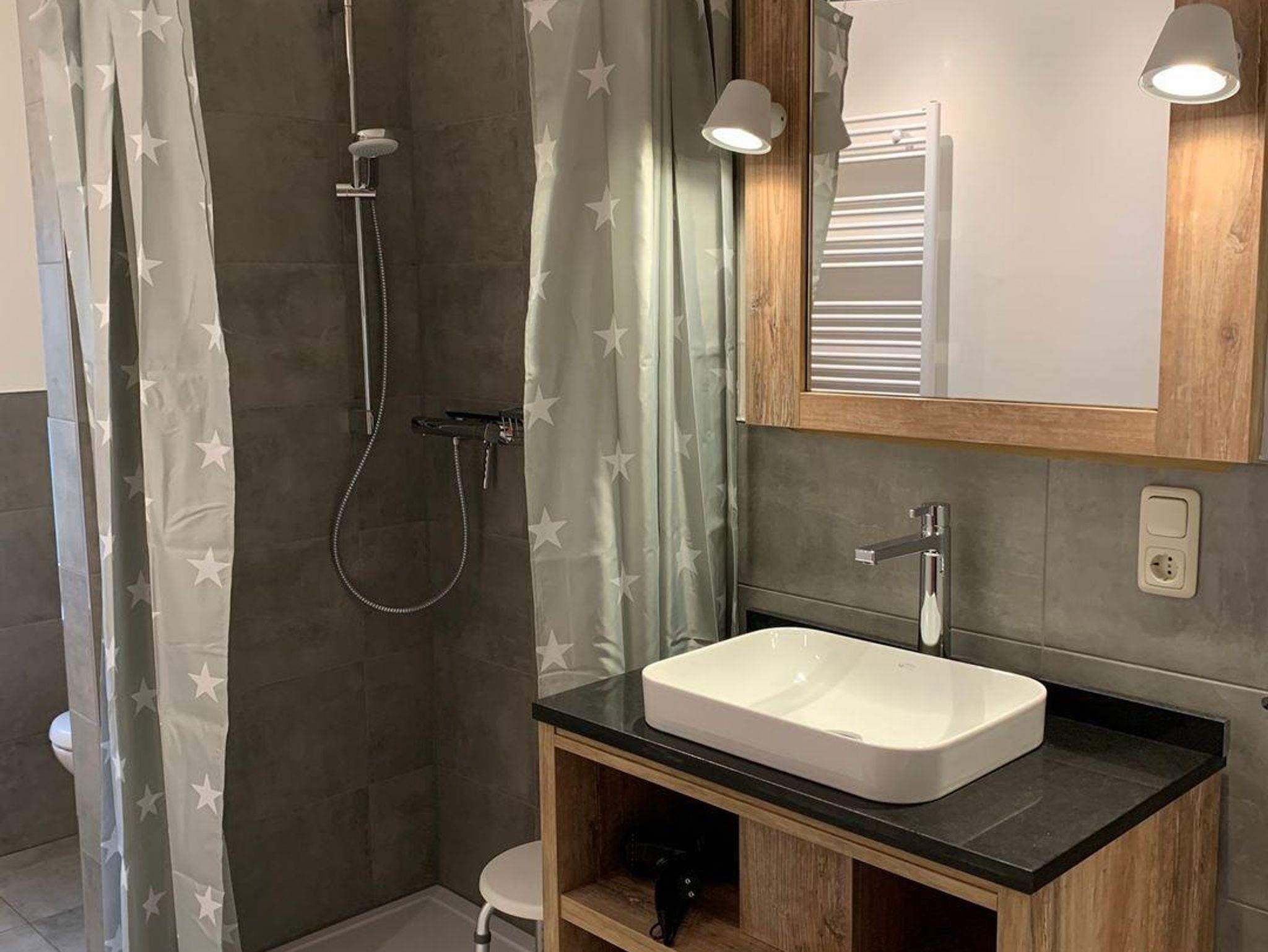 Die Wohnung befindet sich im Obergeschoss mit einem großzügigen Wohnraum mit TV und einer modernen Wohnküche. Die Küche verfügt über hochwertige Elektrogeräte, eine Pad-Kaffeemaschine und eine Filter- Kaffeemaschine. An den Wohnbereich schließen sich ein Duschbad, sowie zwei Schlafzimmer mit jeweils einem Boxspringbett (1,80 x 2,00 m) und 1x mit TV an. Vom Wohnzimmer gelangen Sie auf einem großzügigen Balkon. Hier können Sie sich entspannen und die Seele baumeln lassen.
