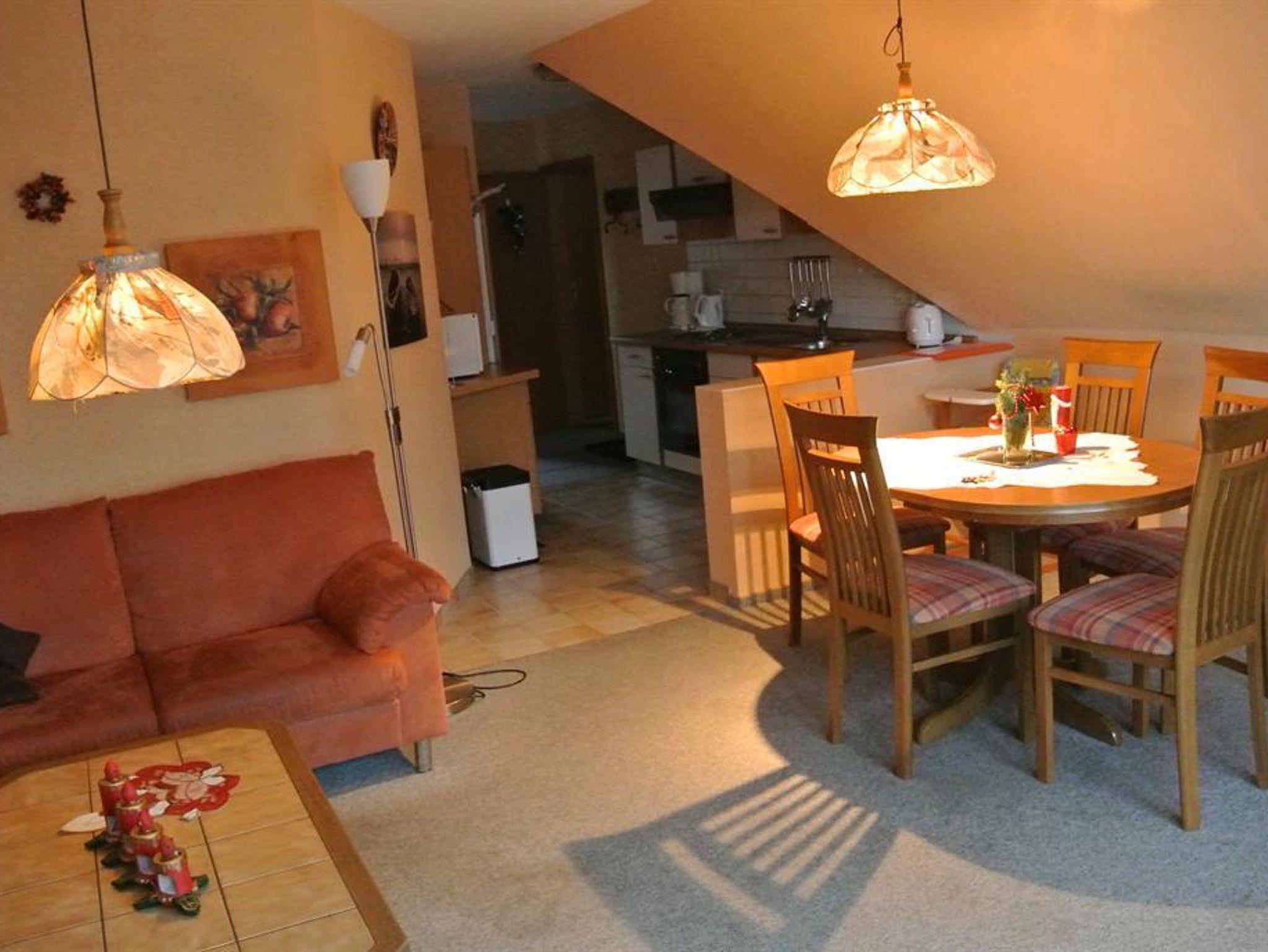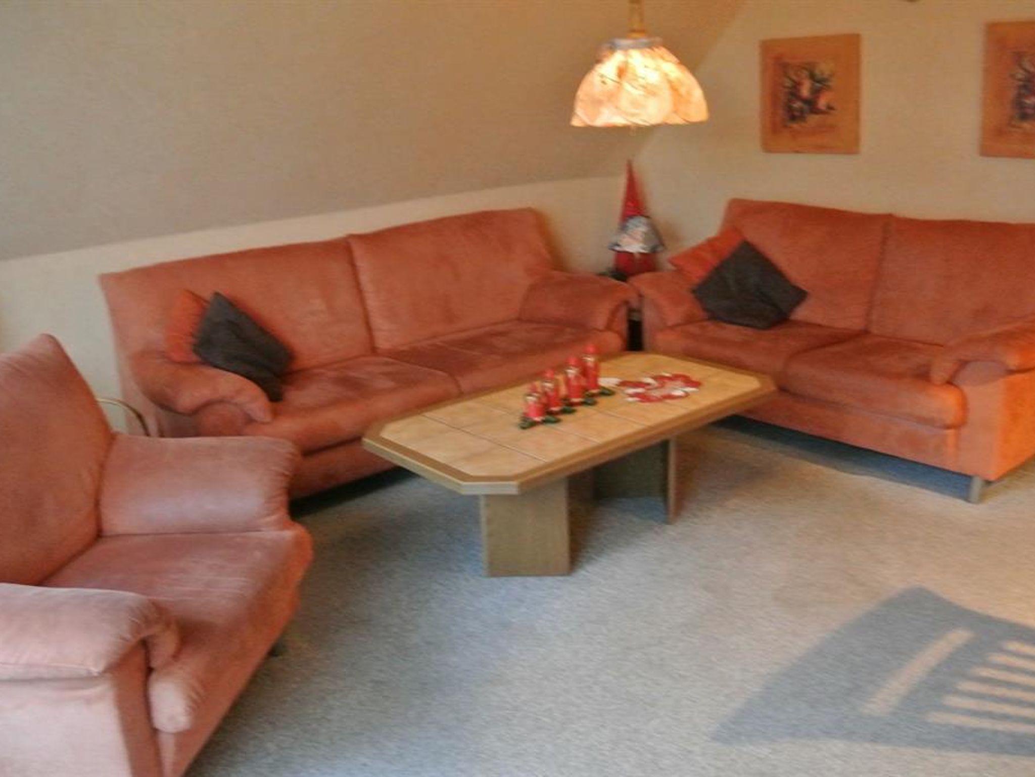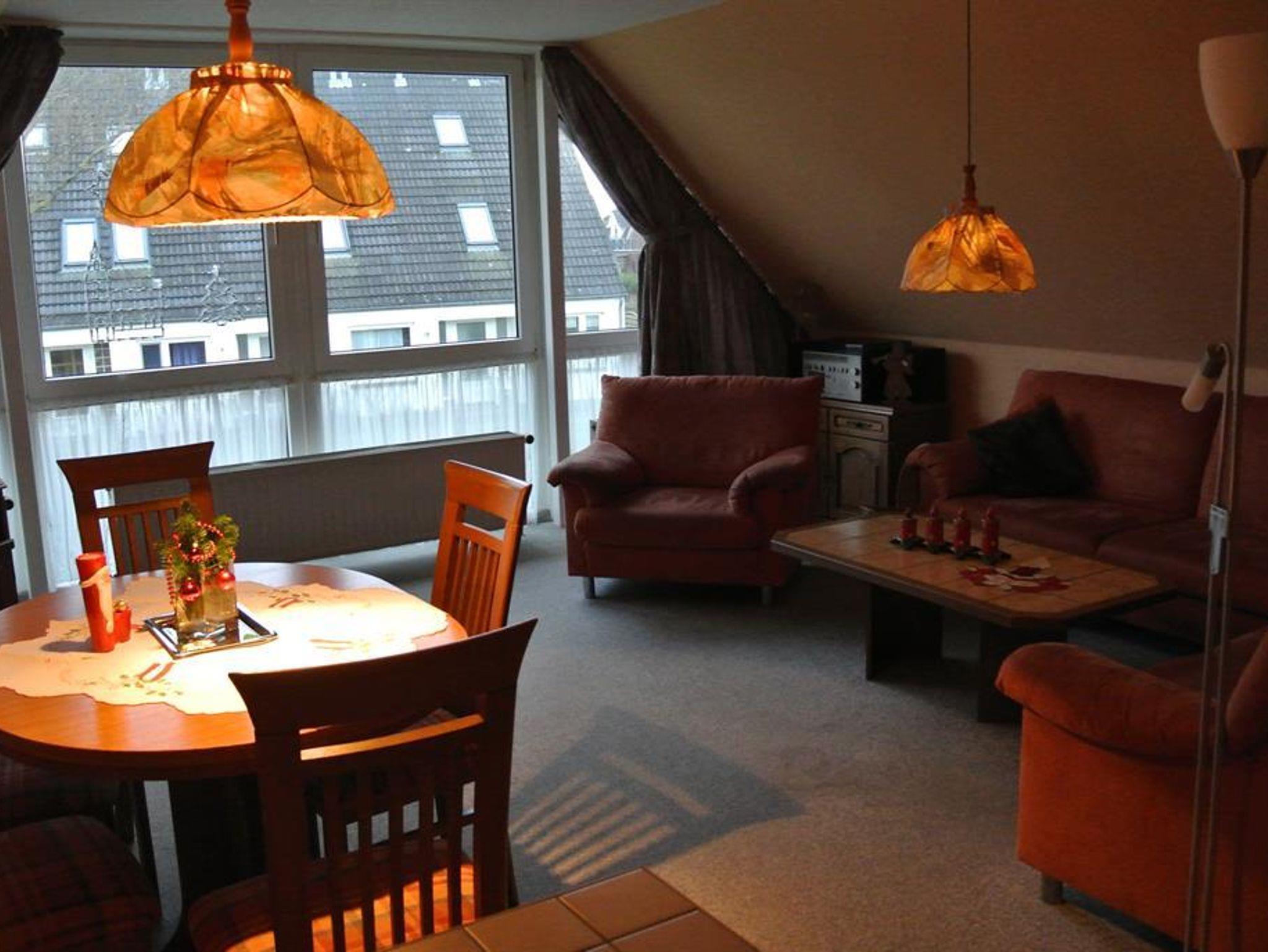 1 Wohnraum mit gr. Studiofenster, Sitzecke mit 3-er und 2-er Sofa, Sessel, sowie SAT-TV und Radio, W-LAN 1 Schlafraum mit Doppelbett. 1 Schlafraum mit zwei Einzelbetten. 1 Schlafraum mit 1 Einzelbett. Küchenzeile mit 4-Plattenherd, Backofen, Mikrowelle, Geschirrspülmaschine, Kaffeemaschine, Wasserkocher, Toaster und Mixer. Dusche/WC. Bettwäsche incl., Handtücher und Geschirrtücher sind mitzubringen. Keine Haustiere erlaubt!