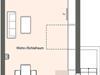 Die offene, moderne Einbauküche lässt keine Wünsche offen: Ausgestattet mit Backofen, Geschirrspüler, Kühlschrank mit Gefrierfach und Kaffeemaschine bietet sie alles, was man zum Kochen und Genießen braucht. Ein kleiner Flur führt Sie in das stilvoll gestaltete Duschbad mit WC.