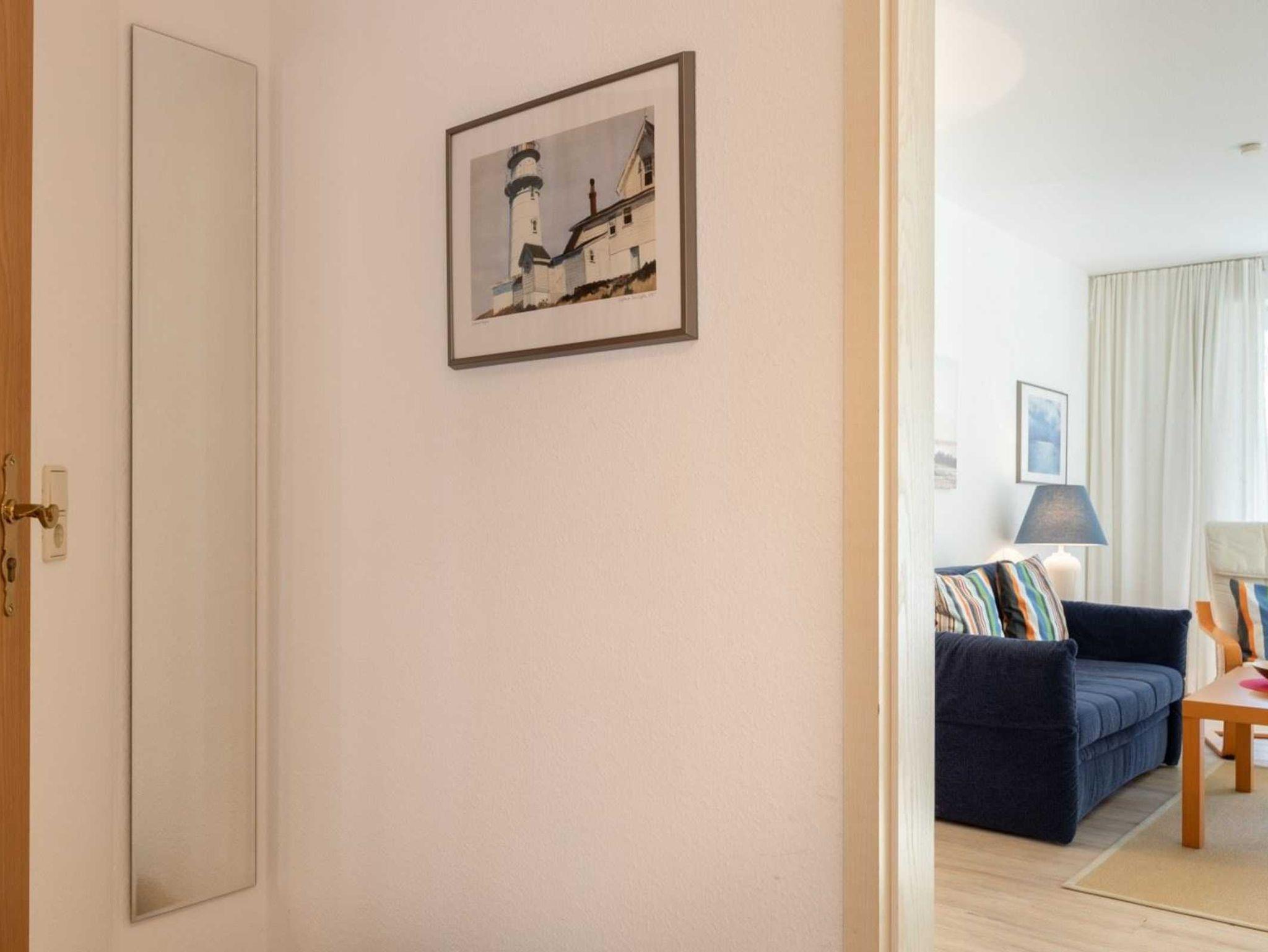 Flur mit Garderobe und Spiegel im Eingangsbereich.