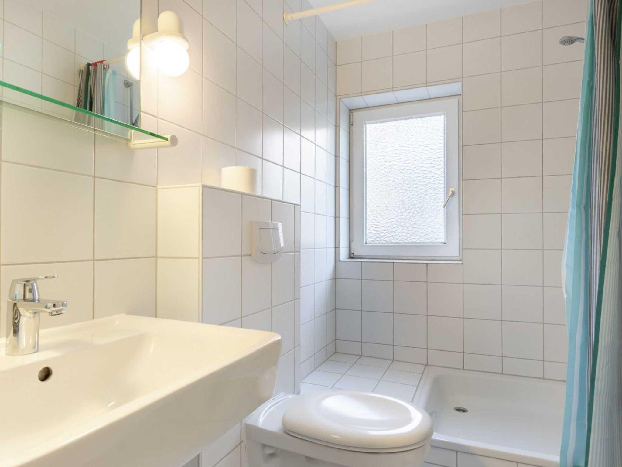 Badezimmer (Duschbad) mit Dusche, WC und Tageslicht.