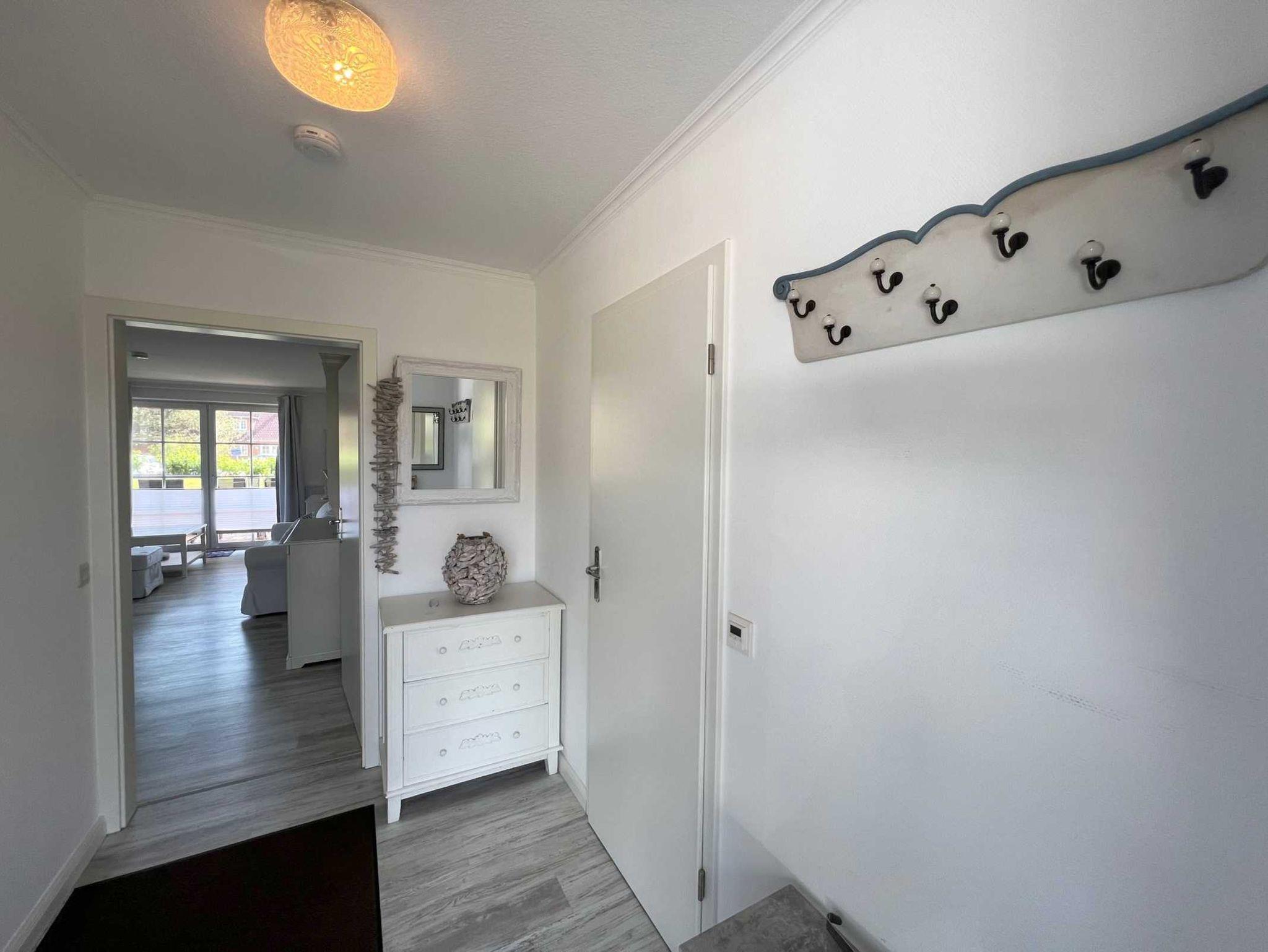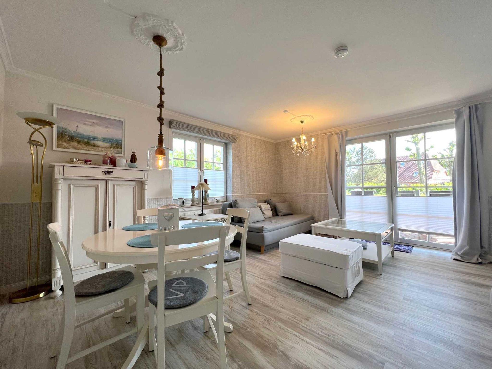 Wohlfühlatmosphäre in sehr geschmackvoller Ausstattung auf 45 qm! Geniessen Sie Ihren Urlaub in dieser, sehr hellen im Strandlook eingerichteten, 2-4 Personen Wohnung mit Terrasse. Genießen Sie die ruhige Lage im Ortsteil Dorf. Binnen weniger Gehminuten erreichen Sie das Zentrum im heimeligen St. Peter Dorf mit seinen Cafes, Restaurants, Galerien,kleinen Läden, Bäcker und einem Frische-Edeka Markt. Im Wohnzimmer befinden sich 2 Sofas, eins davon ist ein Schlafsofa, 1,90 x 2,00 m, mit hohem Liegekomfort, ein Couchtisch, 4K-Smart-Fernseher und 4K-Blu ray DVD-Player, Internetradio, sowie ein gemütlicher, runder Esstisch. Auch im schönen Schlafzimmer mit Doppelbett ist für Entertainment gesorgt, mit einem Smart-Fernseher inkl. DVD. Die Küche, im Landhausstil, ist getrennt vom Wohnzimmer, aber durch viele Fenster ( mit Durchreiche ) zwischen den beiden Räumen sichtbar. Dies gibt dem Wohnraum einen besonderen Flair. Pkw-Stellplatz auf dem Grundstück, Nr. 5.
