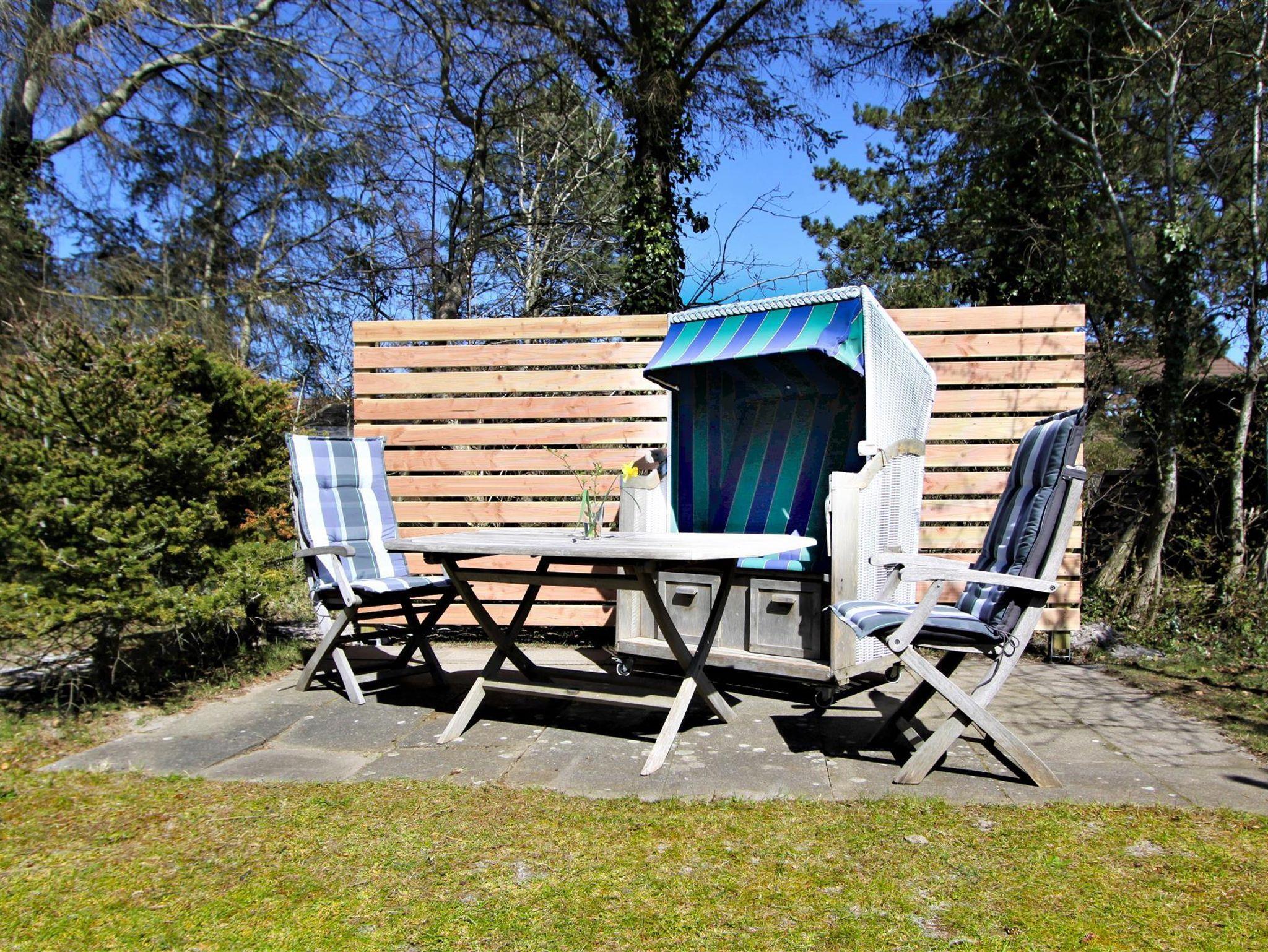 Eine private Terrasse, geschützt hinter einer Düne, lädt zum Erholen und Entspannen ein.