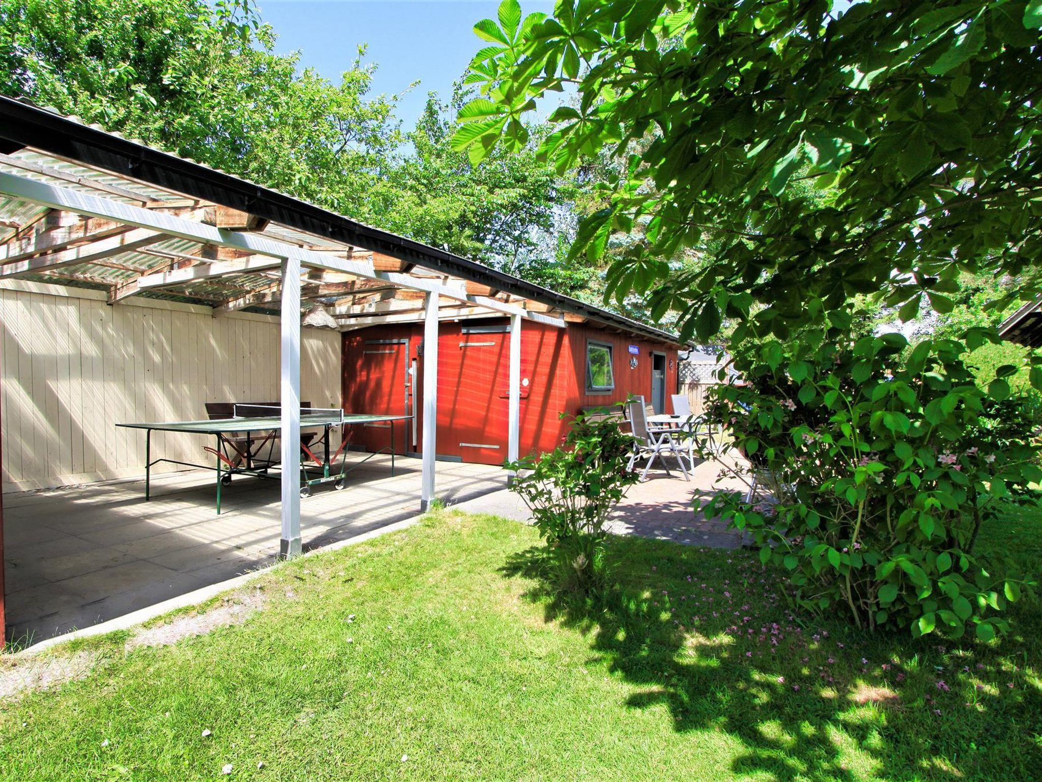 Auch eine Grill- Möglichkeit ist vorhanden. Die Fahrräder können regensicher im großen Schuppen untergestellt werden.