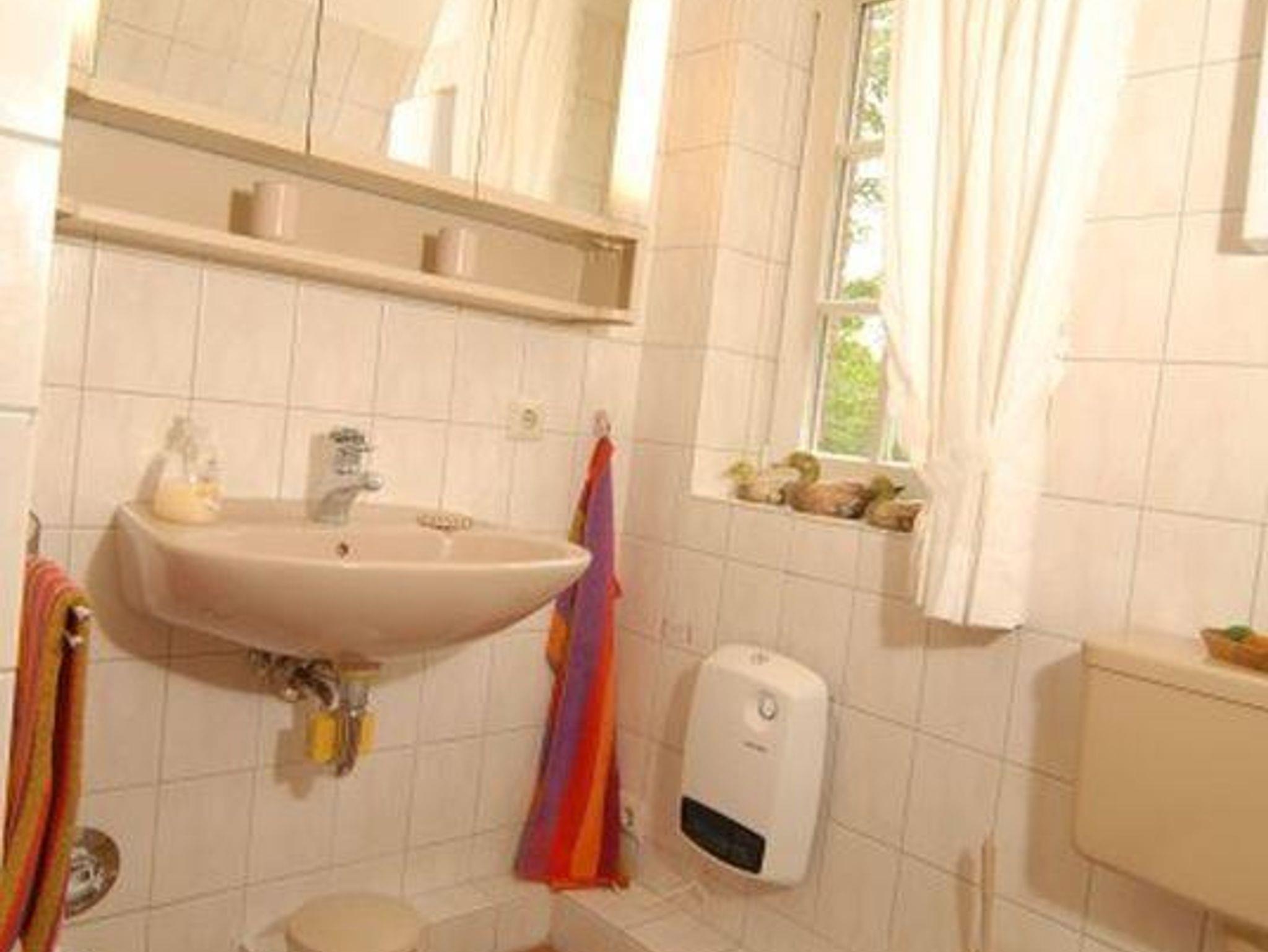 Bad: Dusche, Waschbecken, WC, Duschkabine, Fön, Spiegelschrank, Regal, Handtuchständer, Personenwage