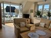 Heller und geräumiger Wohnbereich mit Sitzgruppe, TV und direktem Zugang zum Südbalkon.