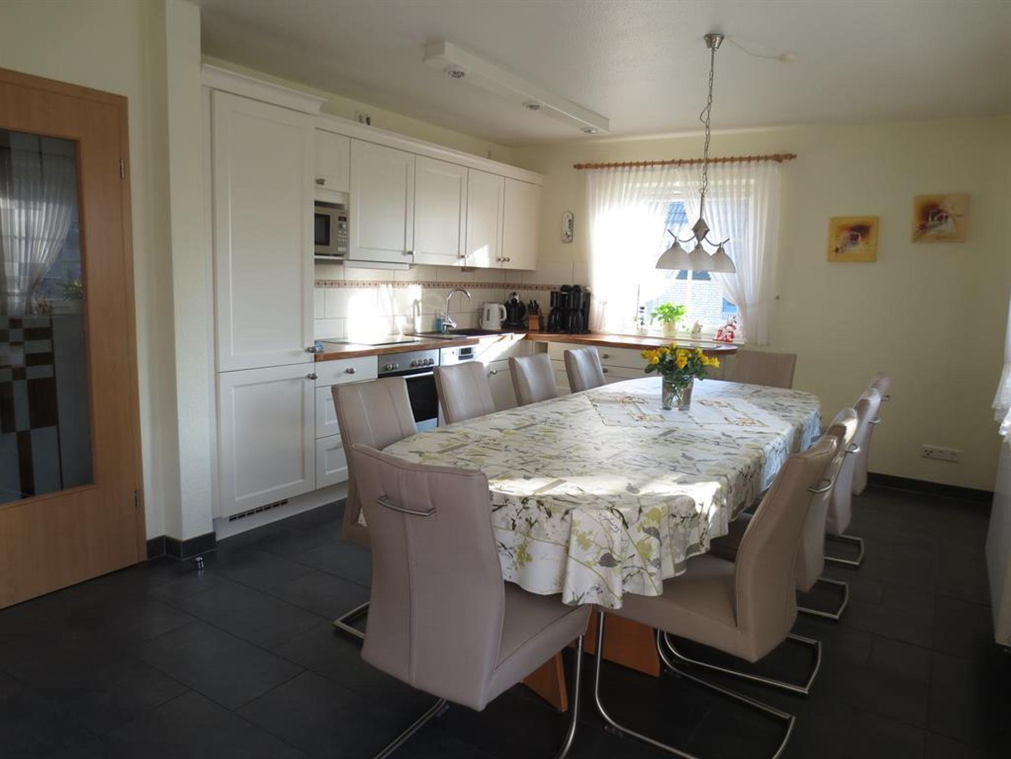 Die offene Landhausküche ist mit allen Annehmlichkeiten ausgestattet - Geschirrspüler, Gefrierschrank, Herd mit Ceranfeld und Backofen, Mikrowelle, Kaffeemaschine und weiteren Küchenhilfen. Ihre Mahlzeiten nehmen Sie am großzügigen Esstisch ein. Im Erdgeschoss gibt es ein Schlafzimmer mit Doppelbett in Comforthöhe. Dusche/WC.