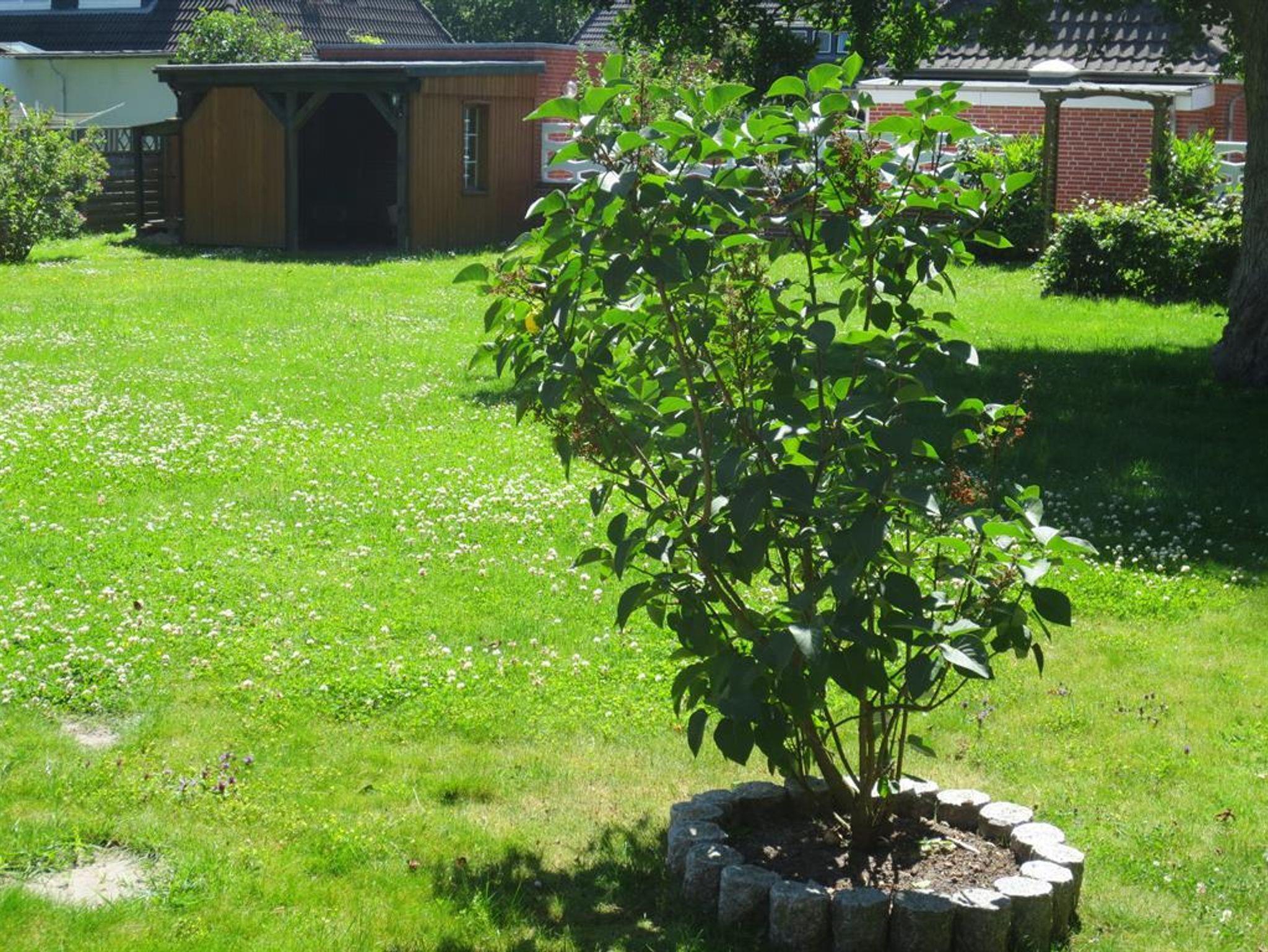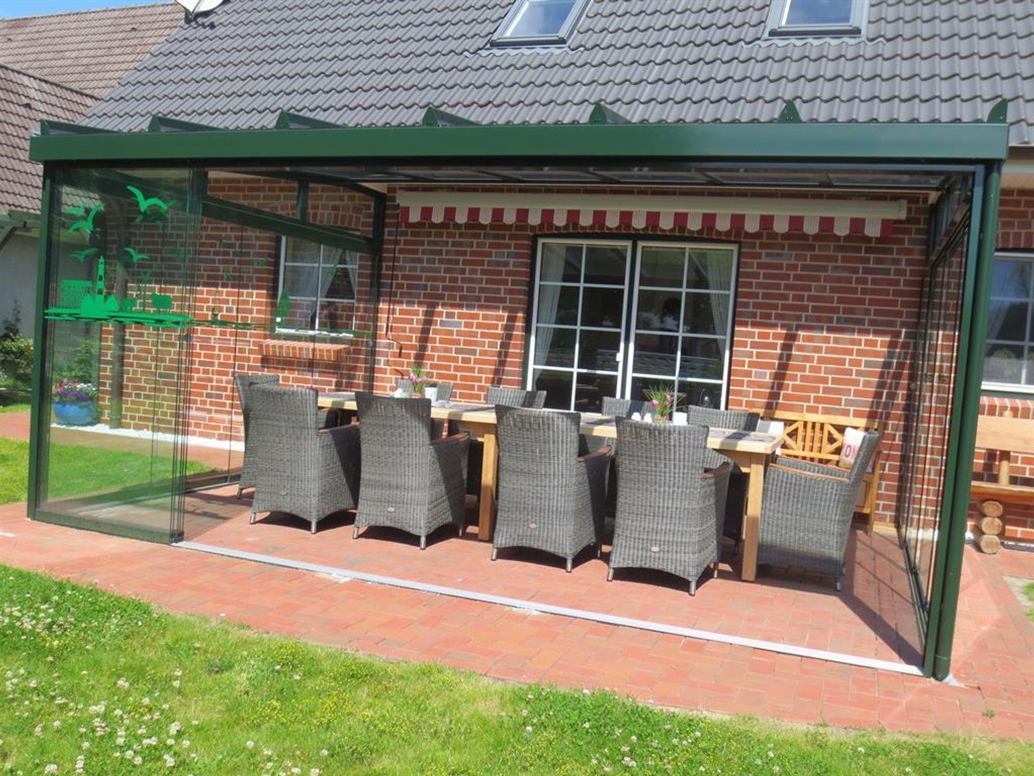 Auf der großen sonnigen Terrasse erwarten Sie eine Sitzgruppe, Strandkorb, Sonnenmarkise und Gartengrill. Der Wintergarten mit seinen verschiebbaren Elementen sorgt auch bei nordischem Wetter für Terrassenfeeling. Der schöne Garten lädt zum Sonnenbaden und Spielen ein.