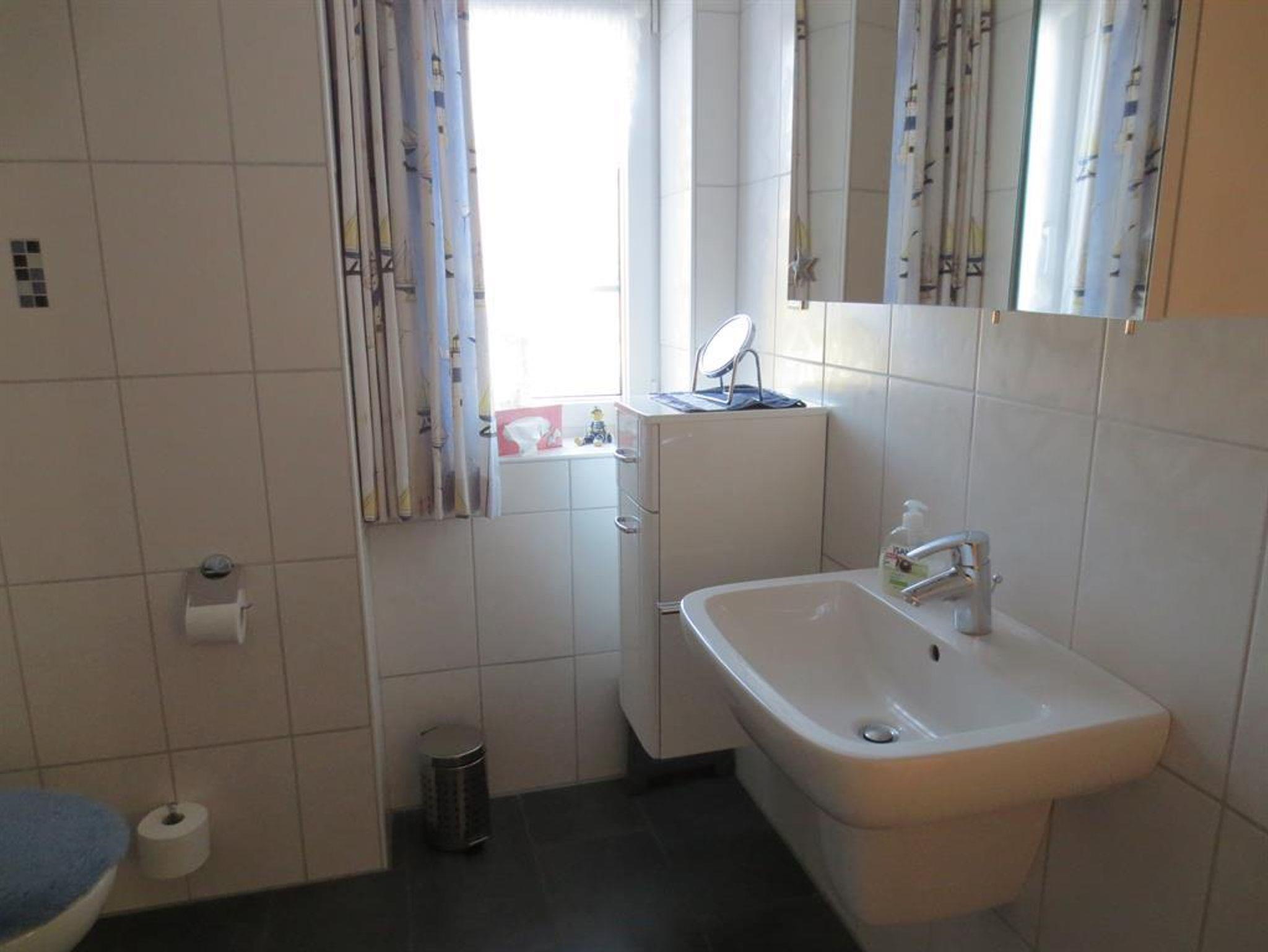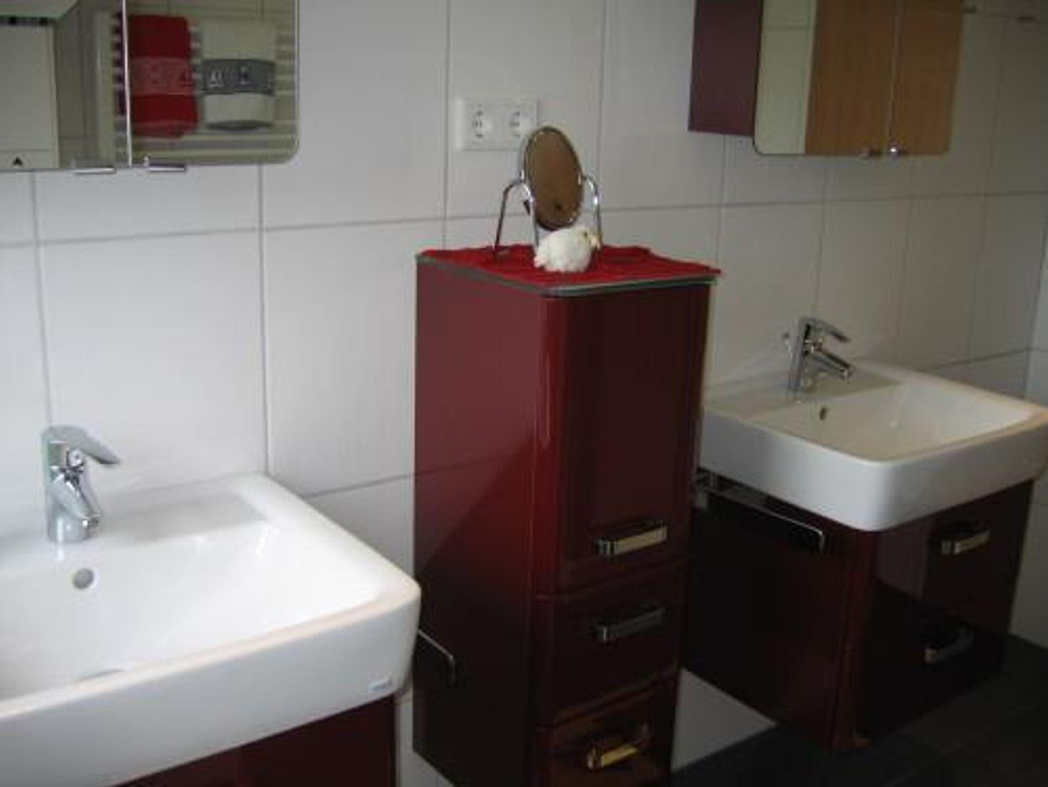Das weitere Bad hat 2 Waschtische, Fön, Dusche und WC.