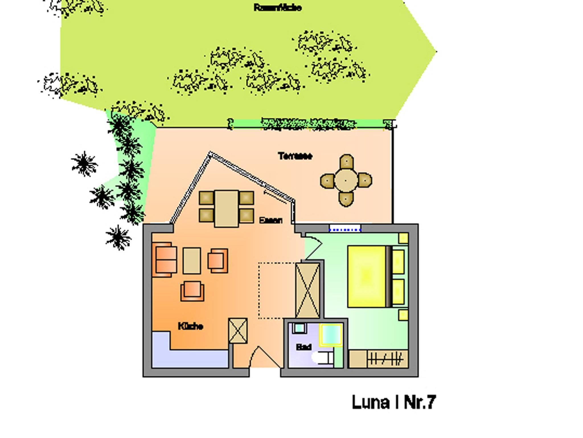 Das über 10.000 qm große Appartementhausgrundstück, eingerahmt von alten, landtypischen Bäumen ist parkähnlich mit Liegewiesen für unsere Gäste, angelegt.