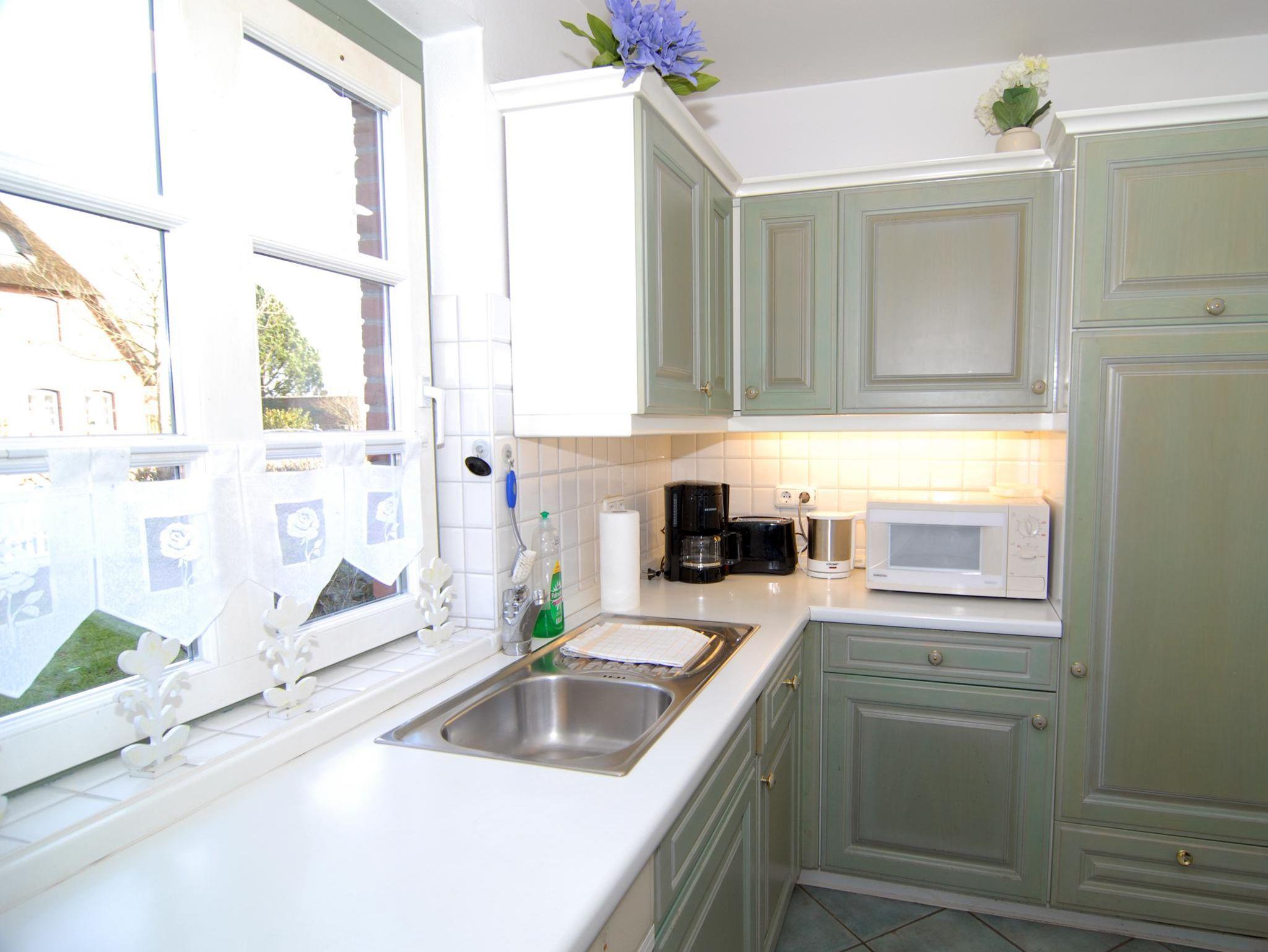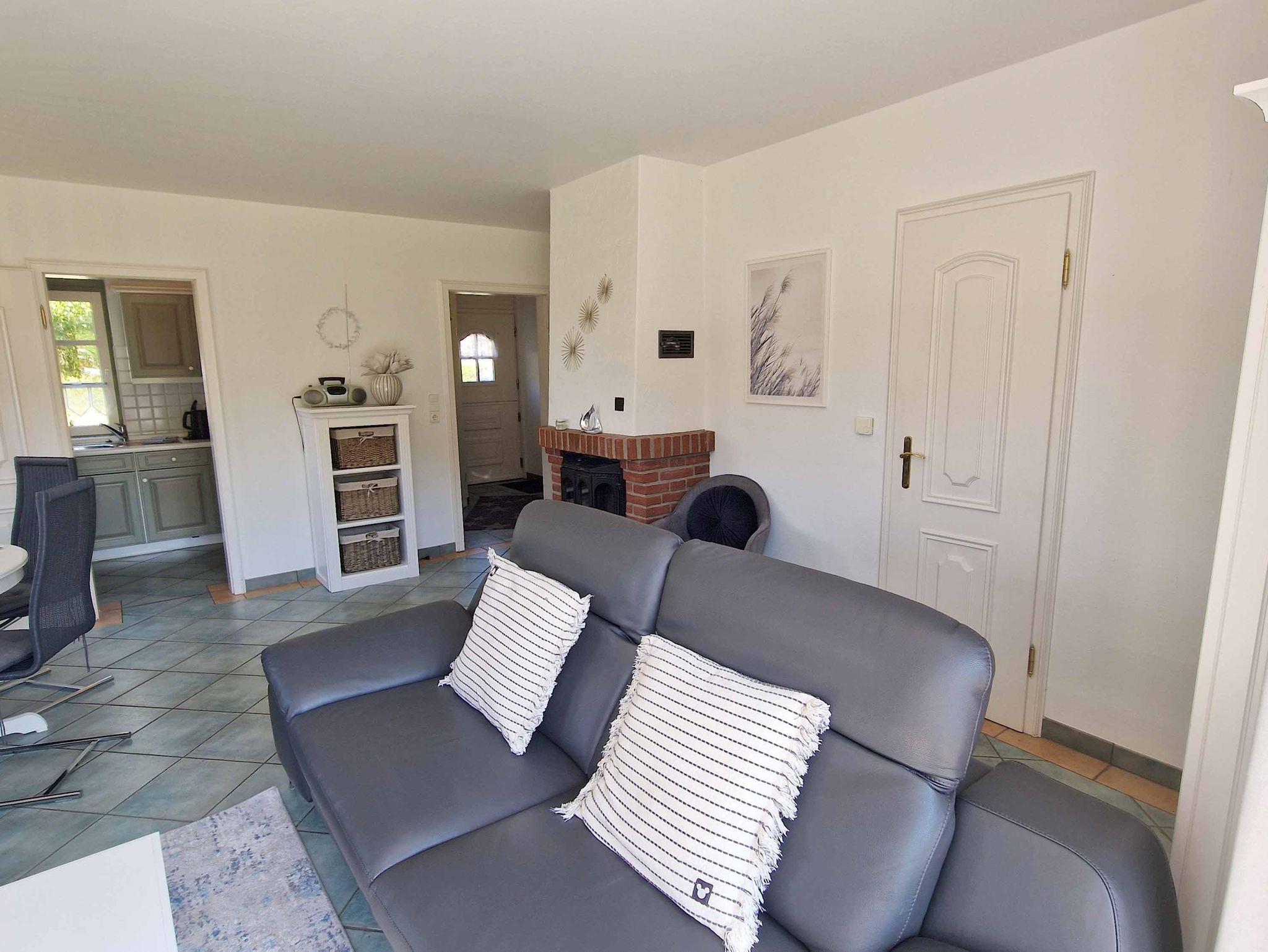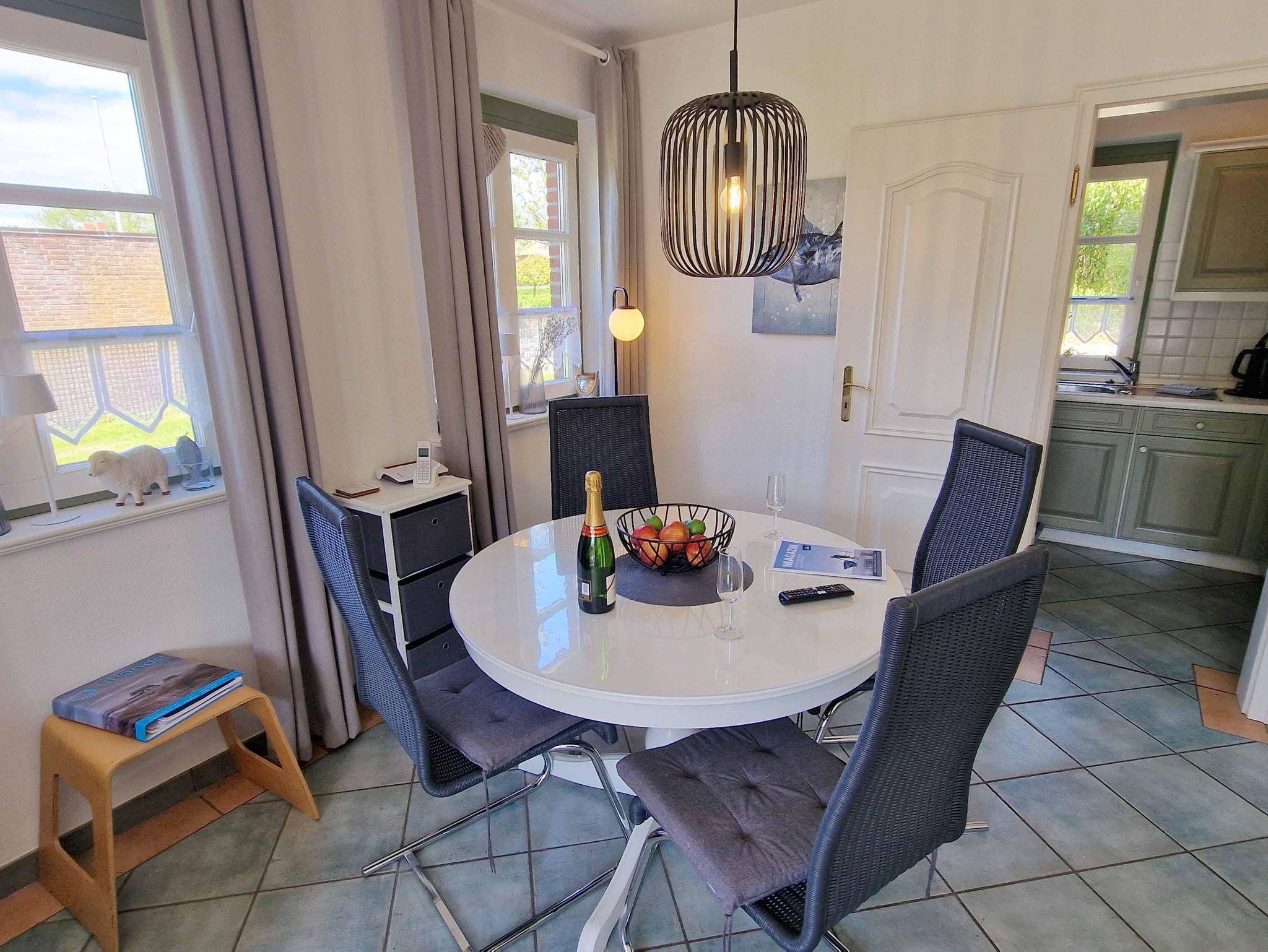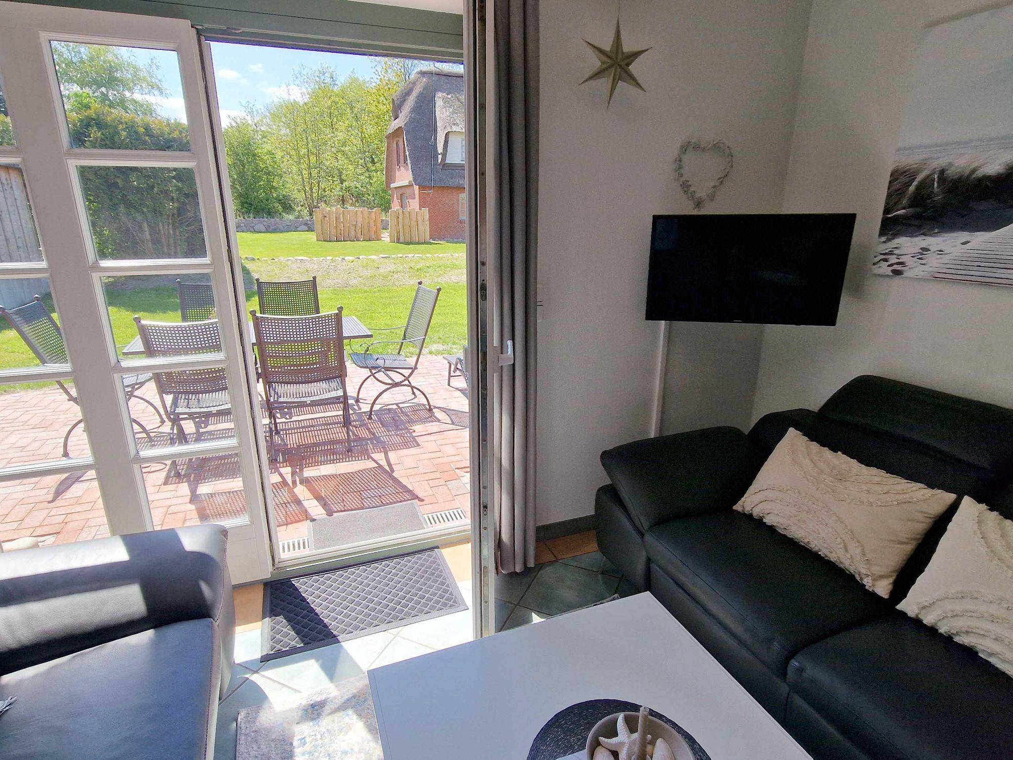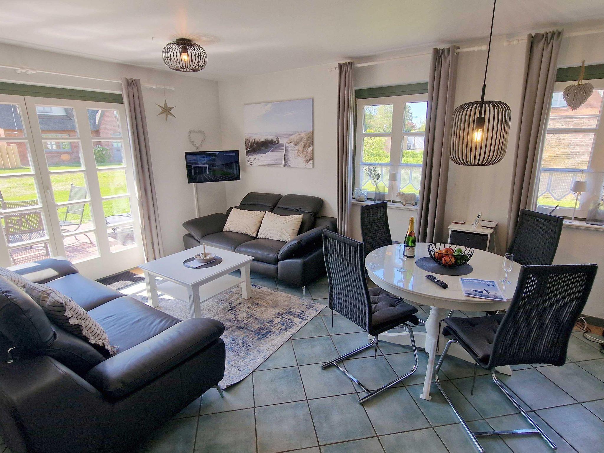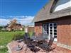 In der Reetdachhaushälfte Friesenstraße 51 erstrecken sich die 4 Zimmer über 2 Etagen und garantieren so ausreichend Platz. Auf der Terrasse in Süd-Westlage fällt das Entspannen leicht. Die schöne Einrichtung wird im Wohnzimmer durch einen Kamin ergänzt. Insgesamt gibt es hier 3 Schlafzimmer, von denen zwei mit Doppelbetten ausgestattet sind. Zusätzlich bekommen Sie hier ein Gäste-WC, eine Garage, eine Waschmaschine und eine wonnig-warme Fußbodenheizung.