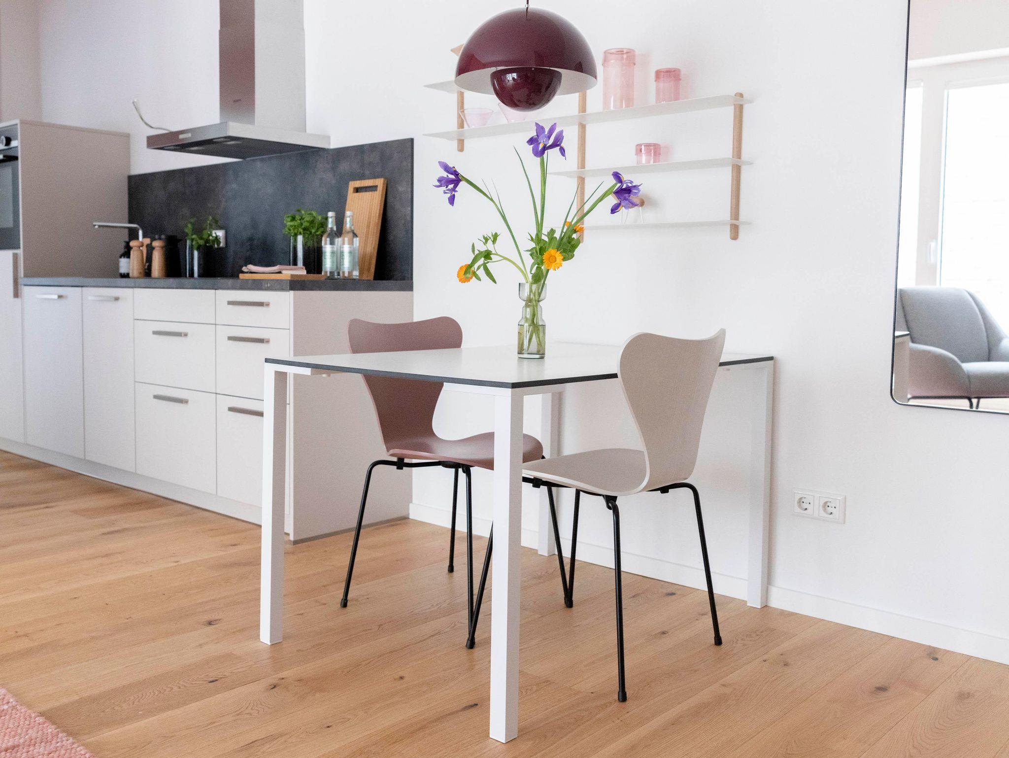 Wenn Du hier schläfst, magst Du gar nicht mehr aufstehen. Oder doch? Das offene Wohnzimmer, das nachhaltige Parkett. Alles nur schön.