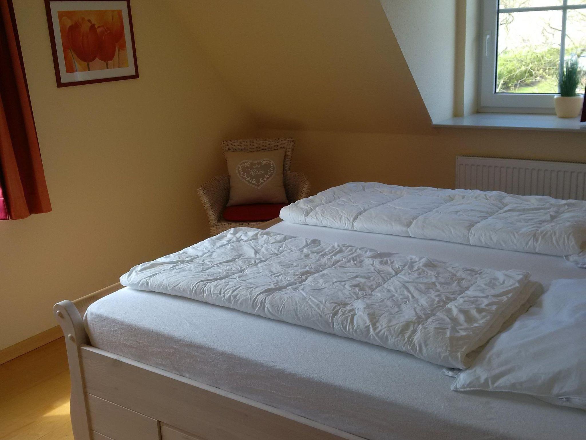3 Schlafräume sind im Obergeschoß des Hauses vorhanden: 1x ein Doppelbett (je 90 x 200 cm) , 1 x 2 Einzelbetten (je 0,9x2,0m)