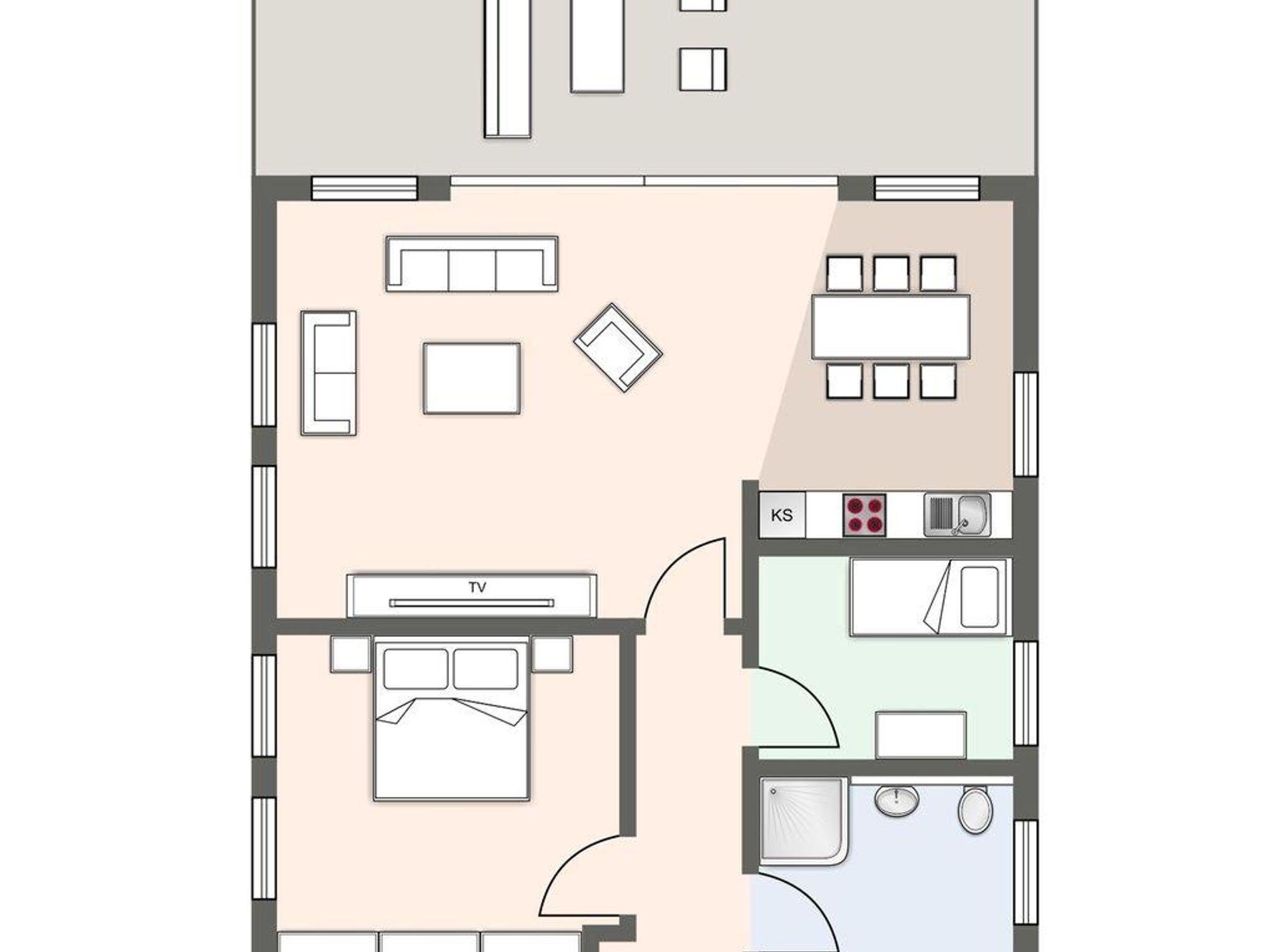 Der lichtdurchflutete Wohnraum mit TV, Sofalonge und einem gemütlichen Essbereich bietet jeden Komfort. Eine großzügige Terrasse lädt zum Sonnen ein. Die Hochglanzküche, mit hochwertigen Geräten, grenzt direkt am Wohnzimmer an. An den Wohnbereich schließen sich ein Flur mit Garderobe, und ein Duschbad, sowie ein Gäste WC an. Das Duschbad ist großzügig gestaltet und bietet genügend Platz für Ihre Utensilien. Die Schlafzimmer, zwei mit 180er Doppelbett und eines mit einem Einzelbett, sorgen für ruhevolle Erholung.