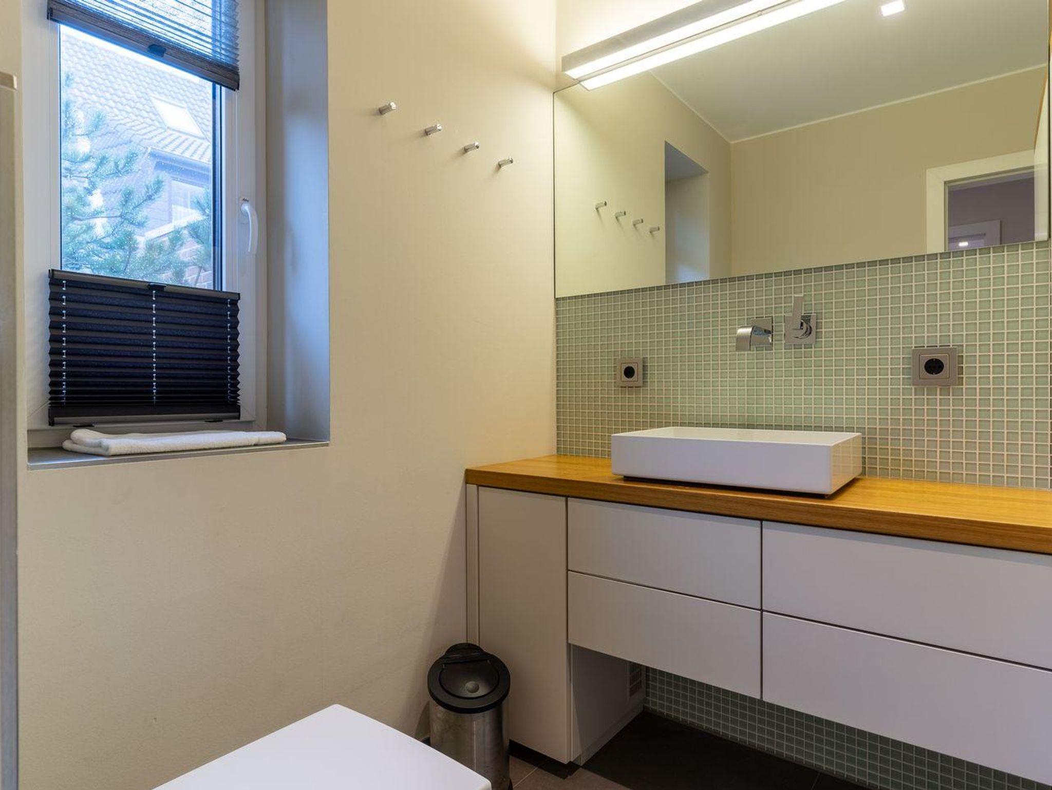 Das Duschbad ist großzügig gestaltet und bietet genügend Platz für Ihre Utensilien. Das Schlafzimmer mit 180er Doppelbett sorgt für ruhevolle Erholung. Aus dem weiteres Doppelzimmer mit 2 Einzelbetten haben Sie einen einzigartigen Blick bis zum Westerhever Leuchtturm.