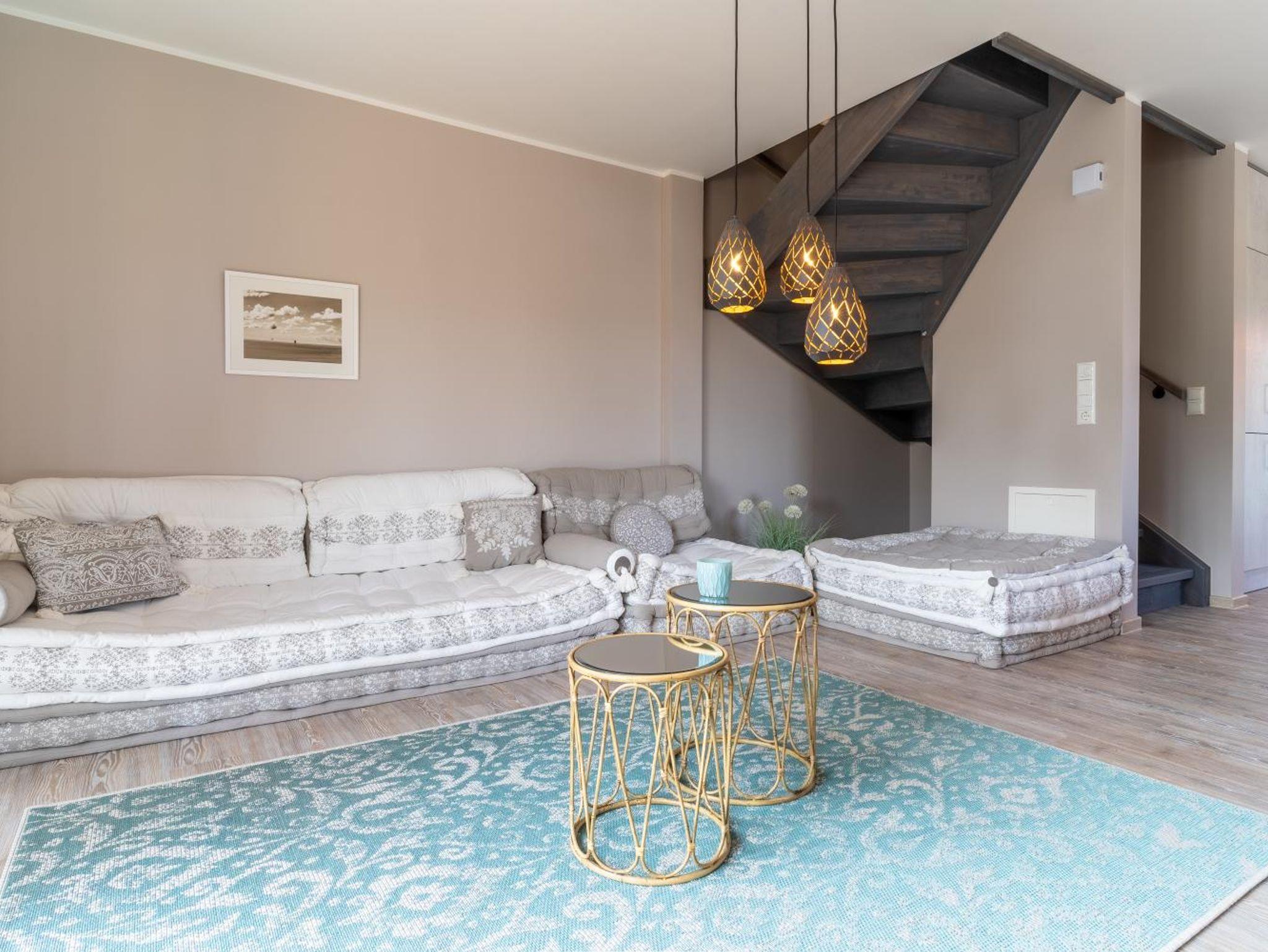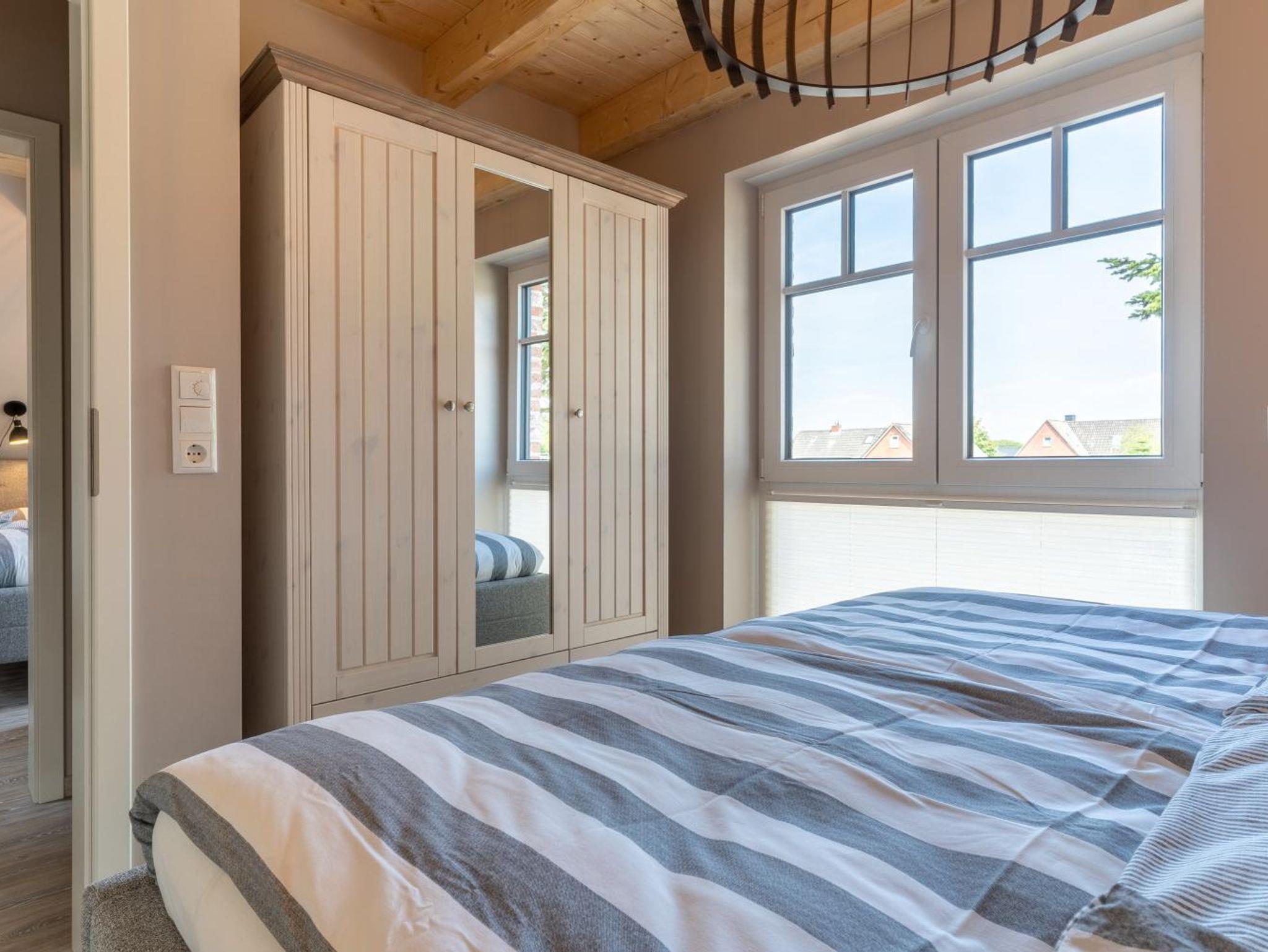 Die beiden Doppelhaushälften Ebbe und Flut bieten Platz für je 2-4 Personen. Im Erdgeschoss findest du die vollausgestattete Küche, die sich zum Wohnraum öffnet. Und weiter gibt es einen edlen, gemütlichen Essplatz am Fenster und eine chillige Sitzecke mit Smart-TV. Viel Licht und chices Design zwischen Scandi- und Strandhaus-Look sorgen für eine angenehm lässige und fröhliche Atmosphäre. Durch die Terassentür gelangst du auf deine Terrasse. Zum Süden ausgerichtet, lässt es sich hier bestens relaxen. Wir sorgen dafür, dass du dich auch outdoor wie zu Hause fühlst. Im ersten OG kannst du träumen in zwei Schlafzimmern mit je einem großen Doppelbett für erholsame Stunden. Du kannst die beiden Schlafräume mit motorgesteuerten Rolläden verdunkeln. Auch beim Thema Schlafen achten wir auf erlesene Zutaten wie ausgezeichnete Matratzen und Bettwäsche aus feinster Baumwolle. Du sollst es bequem haben und dein Zuhause am Meer genießen können. Jedes Zimmer hat ein eigenes, geschmackvoll eingerichtetes Bad mit bodentiefer Dusche. Im zweiten OG findest du einen gemütlichen Spitzboden zum Chillen. Viel Glas bietet hier einen schönen Ausblick. In der kalten Jahreszeit sorgt die Fußbodenheizung in allen Räumen dafür, dass es mollig warm ist. Und natürlich haben wir an WLAN gedacht. Dein Auto kannst du gleich gegenüber auf dem Parkplatz abstellen. Wenige Schritte, und EBBEUNFLUT öffnen ihre Türen: Moin, Moin und herzlich willkommen!