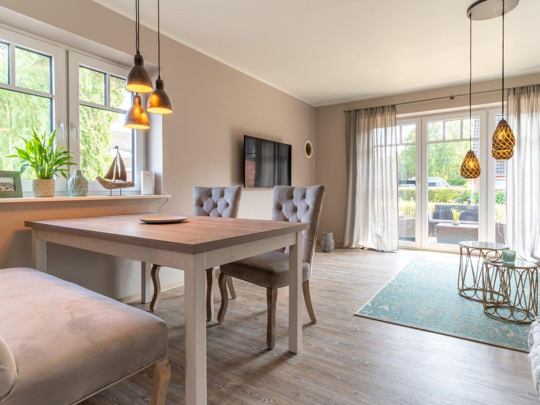 Ruhige allerbeste Wohnanlage. Gleich um die Ecke in der Badallee ist ein Bäcker, außerdem findet ihr verschiedene Restaurants und Geschäfte, Cafés, einen Fahrradverleih und die Stadtbibliothek. Ein paar Minuten weiter zu Fuß, und du erreichst den Marktplatz, wo mittwochs allerbester Fisch und andere Köstlichkeiten zu bekommen sind. Hier schließt die Dorfstraße an mit noch mehr Cafés, Restaurants und tollen Läden. Bewegst du dich vom Deichgrafenweg in die nördliche Richtung, gelangst du ins Bad. Hier findest du die wunderschöne Dünentherme, das Dünen Hus mit Veranstaltungen, viele Restaurants, Läden sowie einen weiteren Edeka. Sehr schöne Spazier- und Wanderwege beginnen gleich vor deiner Tür. Du hast die Qual der Wahl: durch den Wald spazieren oder doch lieber auf dem Deich die Nase in den Wind halten?