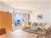 Wohn- und Schlafzimmer mit Sofa, 2 Sesseln, SMART-TV (Kabel), DVD-Player und Esstisch mit 4 Stühlen. Direkter Zugang zum möblierten Balkon nach Süd-Osten. Offene Küche mit Backofen, Mikrowelle, Kühlschrank mit Gefrierfach und Geschirrspüler.