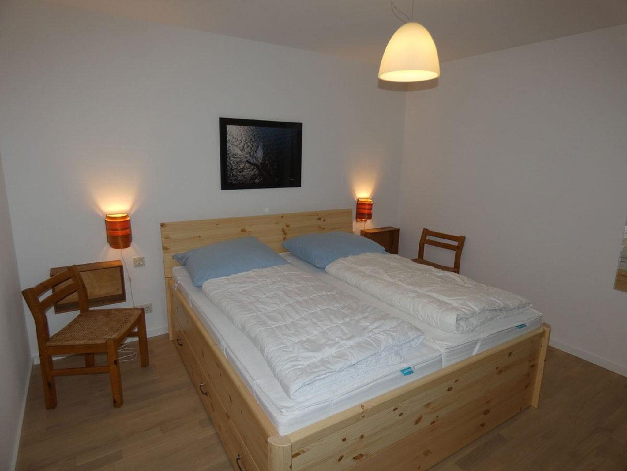 Die Wohnung Rico unten liegt ebenerdig und ist mit 65qm Wohnfläche im skandinavischen Stil ausgestattet. Sie finden einen Wohnschlafraum mit Schlafcouch, Sitz- und Essecke, dänischem Kaminofen, sowie eine sonnige Fensterfront mit Ausgang zur möbilierten Terrasse vor. In der Ferienwohnung befindet sich eine separate Küche voll ausgestattet mit Mikrowelle und Geschirrspüler, Insektenschutzfenster, ein Duschbad, sowie ein separates WC. Ein Schlafzimmer mit einem Doppelbett lädt zum Schlummern ein. Ein weiterer Schlafraum mit einen Etagenbett ist vorhanden. Bettwäsche und Handtücher sind auf Anfrage mietbar.