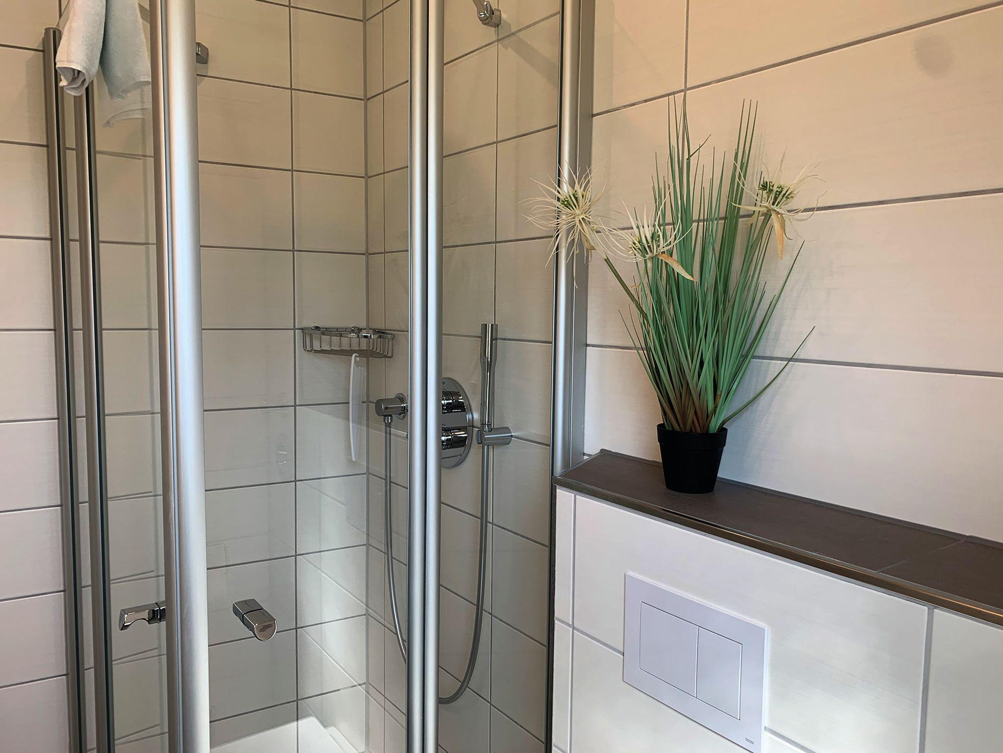 Bad:Dusche, Waschbecken, WC, Spiegelschrank