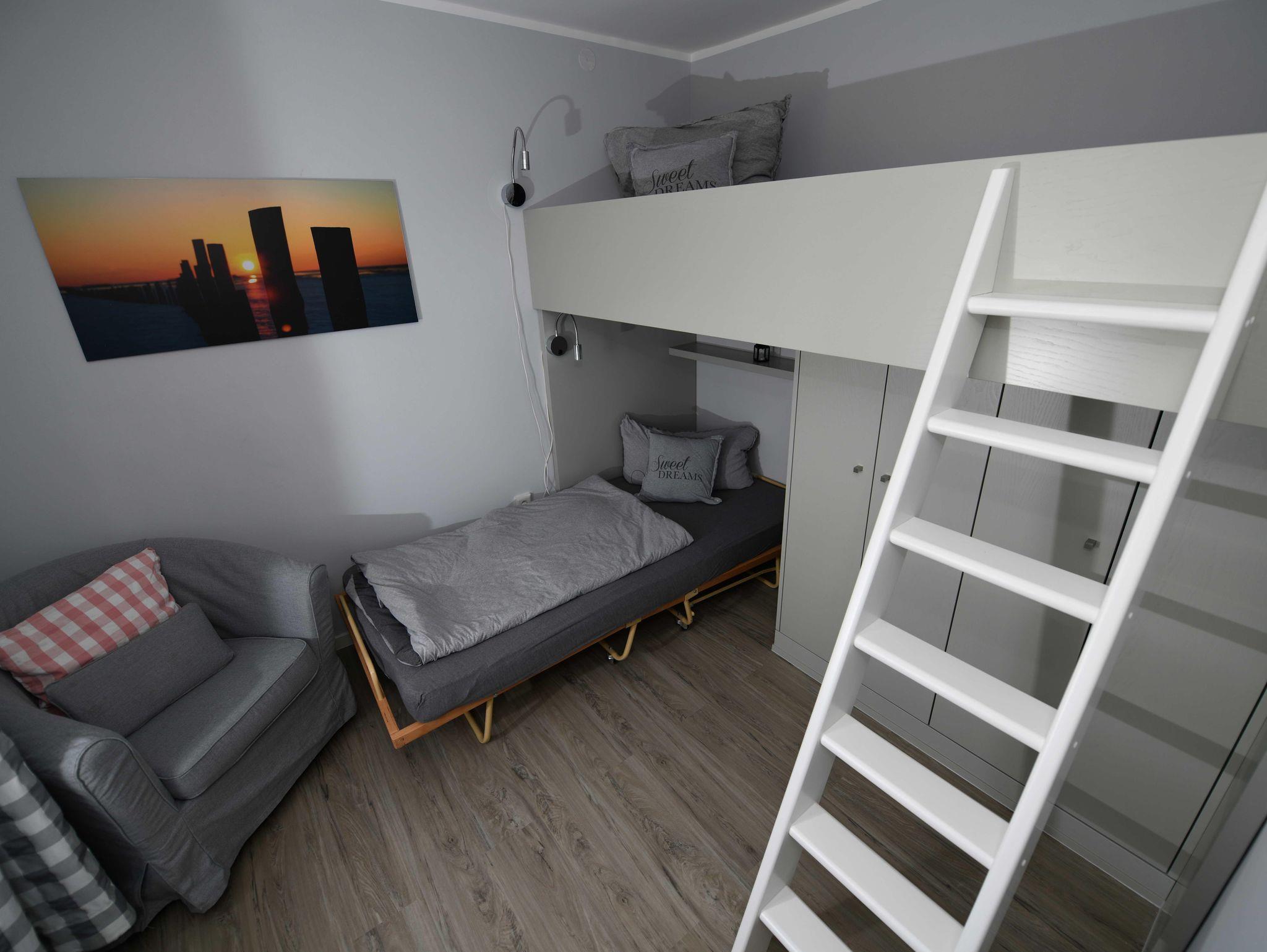 - separates Kinderzimmer mit je einem Einzelbett und einem Halbhochbett