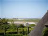 Wohnzimmer mit 2 Sofas (2er), ausklappbarem Schrank-Doppelbett (2x 80x200cm), TV (Kabel), Hifi-Anlage und Esstisch mit 4 Stühlen. Direkter Zugang zum möblierten Balkon nach Westen mit phänomenalem Ausblick über ein schönes Reetdachhaus und die Deichpromenade bis zu den Pfahlbauten am Strand. Halboffene Küche mit Herd mit 2 Ceran-Kochstellen, Kühlschrank mit Gefrierfach und Geschirrspüler.
