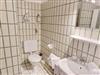 Bad:Dusche, Waschbecken, WC, Schrank, Duschkabine, Hocker