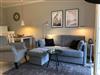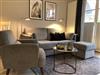 Wohnbereich: bequemer Sessel im französischen Landhausstil, 2er-Sofa mit passendem Fußhocker