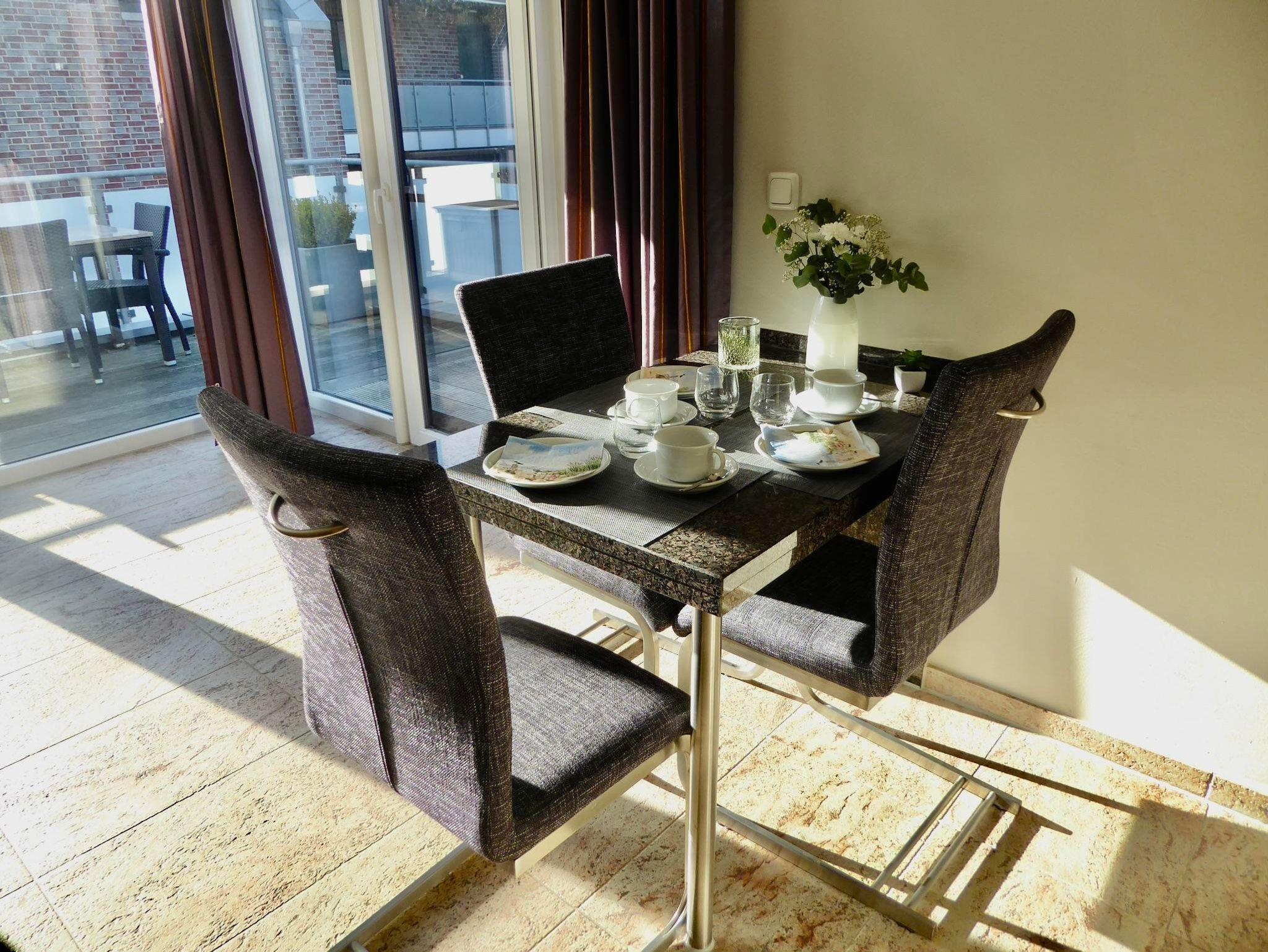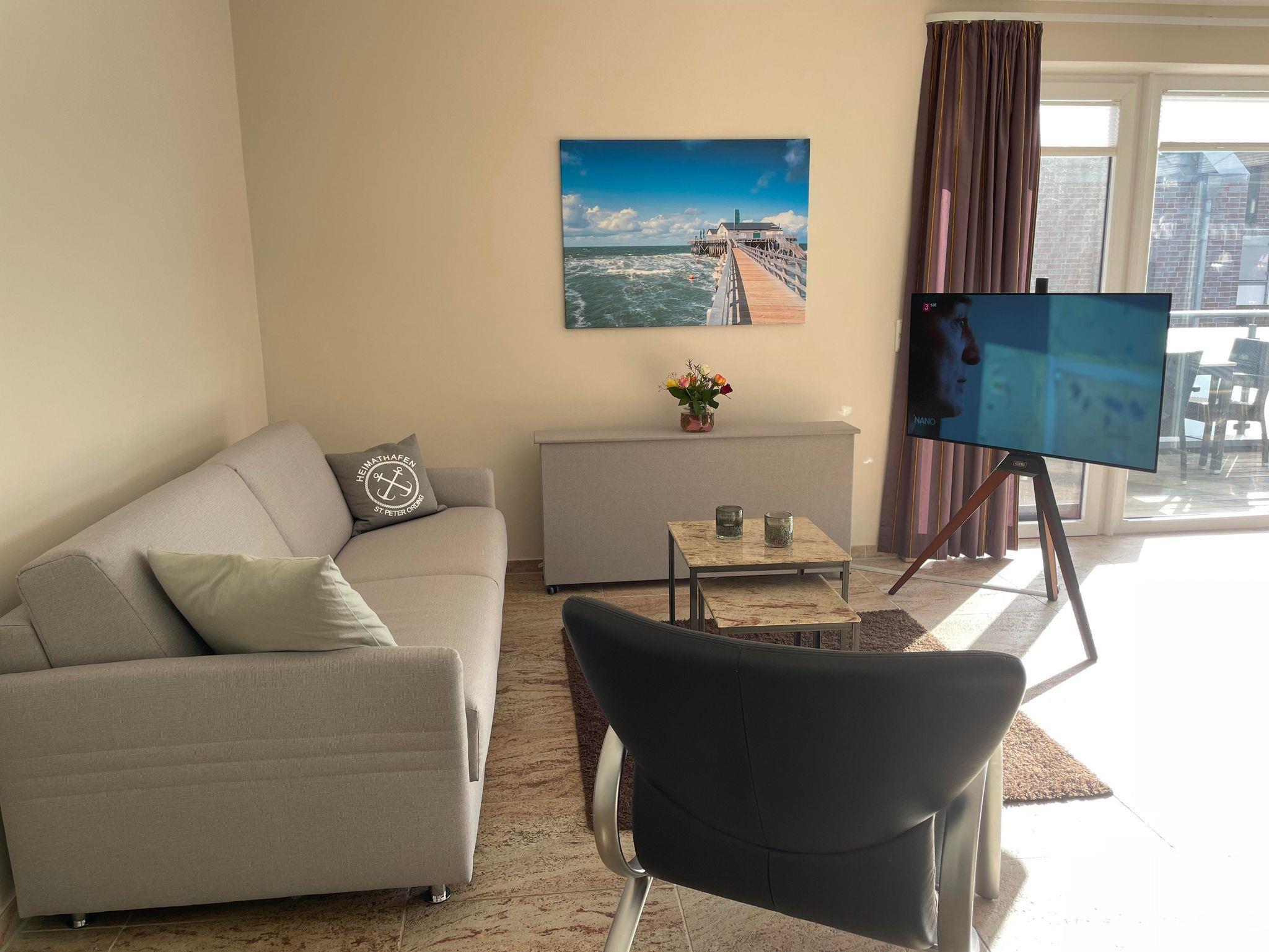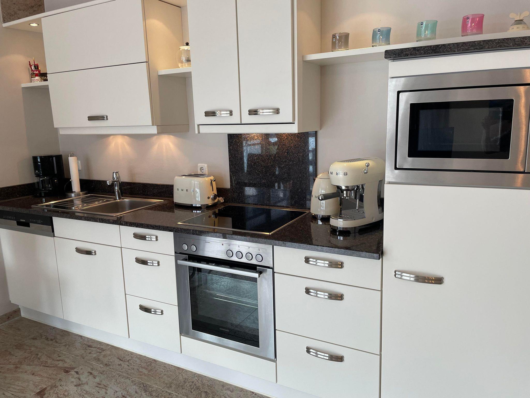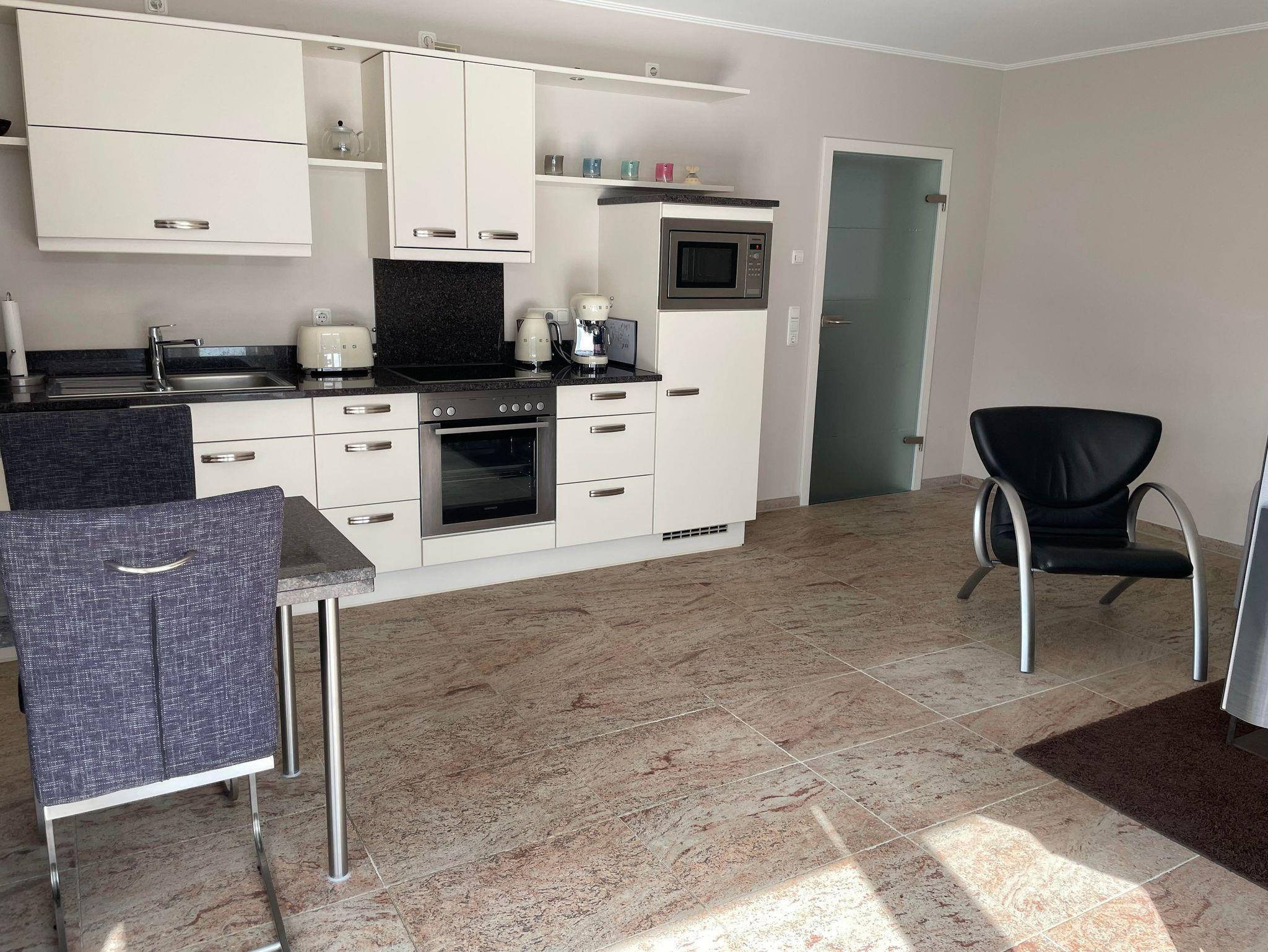 Attraktiver Neubau direkt am Kurwald in bester Lage im Bad Zentrum gelegen. 2-Zimmer-Appartement, 1. Etage (auch Aufzug vorh.).Exclusive Ausstattung. Flur. Duschbad/WC (Dusche ebenerdig), mit 1-Pers.-Infrarotkabine, Föhn, Safe. Wohnraum mit Sitzecke, hochwertige Schlafcouch, Essecke, 2 OLEDTV, 100 Mbit kostenloses WLAN. Umlaufender möbl. Südwestbalkon mit Markise und Strandkorb. Küchenzeile mit 4-Pl.-Herd (Ceran), Backofen, Geschirrspüler, Mikrowelle. Schlafraum mit Doppelbett, Wäschepakete inkl., Fußböden in Naturstein. Insektenschutz. PKW-Platz, kostenlose Nutzung der privaten 11 KW Wallbox. Fahrradabstellplatz, Waschmaschine und Trockner im Keller vorhanden (Münzmaschinen) NICHTRAUCHER. Keine Haustiere.