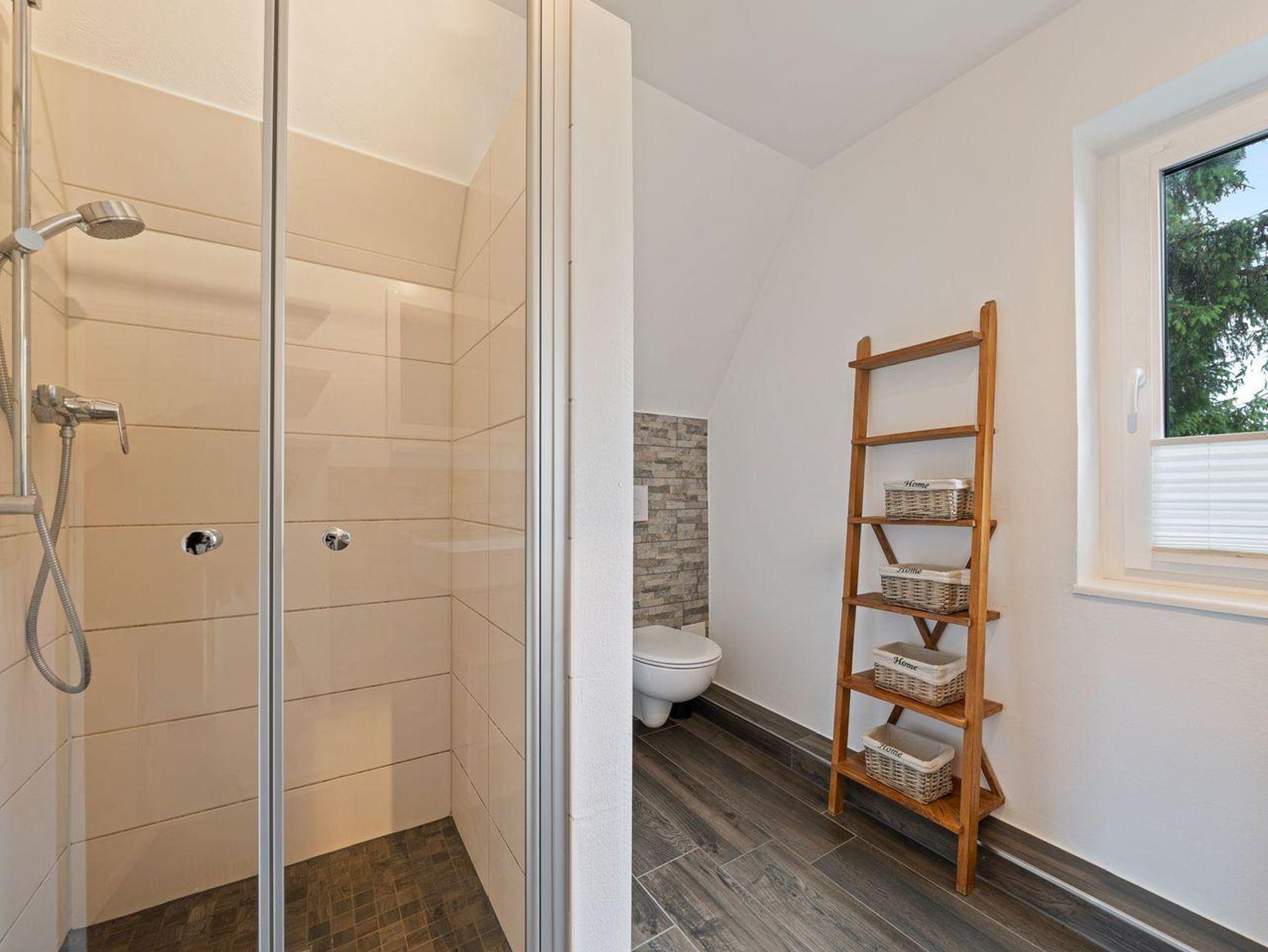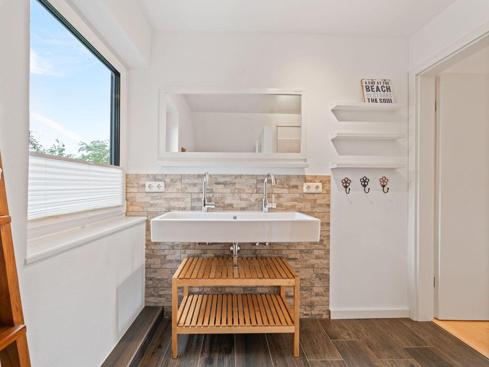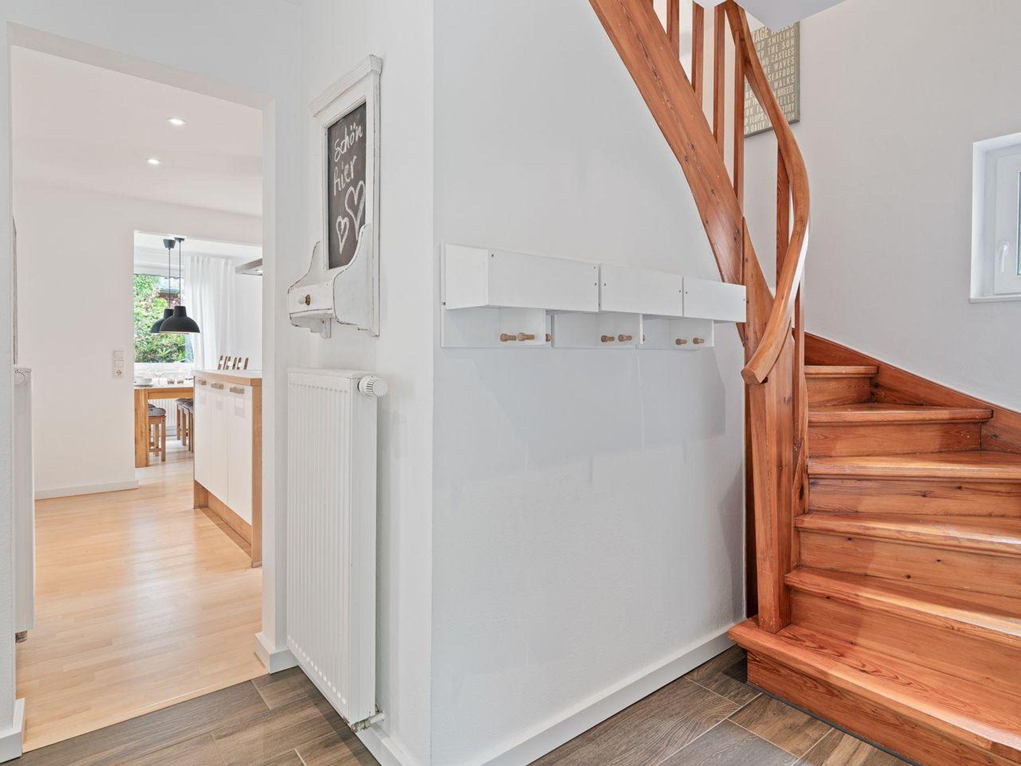 Im Erdgeschoss erwartet Sie ein hübscher, heller Wohnraum mit SAT-TV, WLAN und einer schönen Essecke. Die offenen Küche mit Küchenblock, Geschirrspüler und Backofen lädt zum Kochen ein. Ein Abstellraum und ein Gäste-WC komplettiert die Etage.