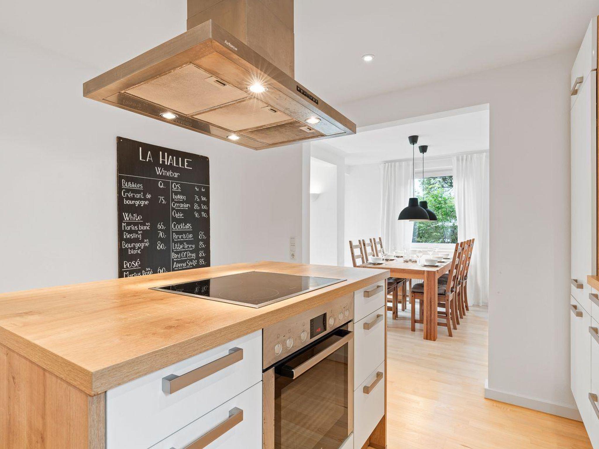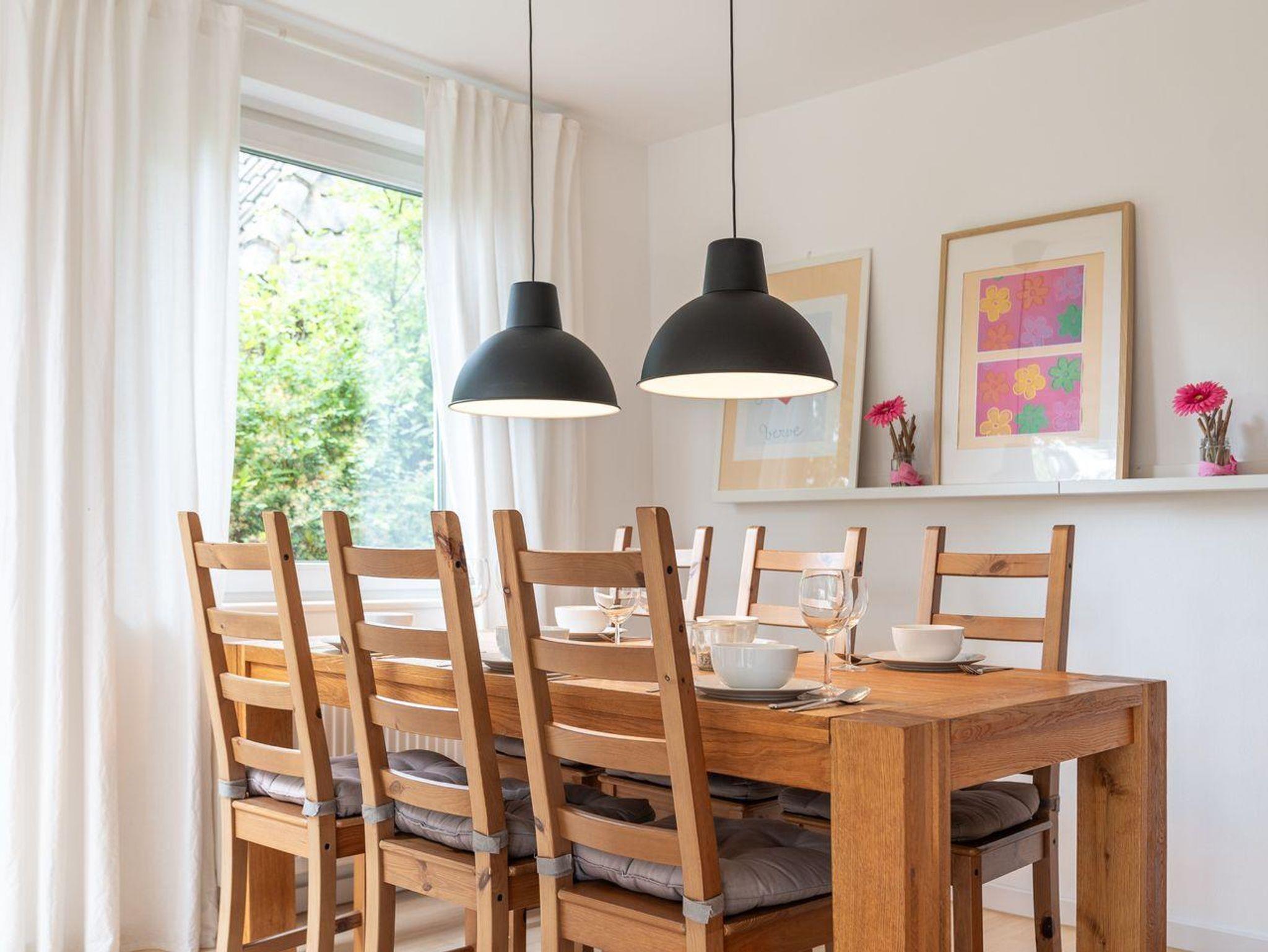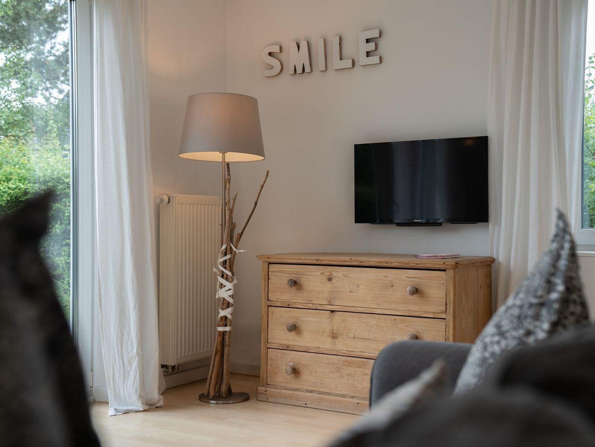 Im Erdgeschoss erwartet Sie ein hübscher, heller Wohnraum mit SAT-TV, WLAN und einer schönen Essecke. Die offenen Küche mit Küchenblock, Geschirrspüler und Backofen lädt zum Kochen ein. Ein Abstellraum und ein Gäste-WC komplettiert die Etage.