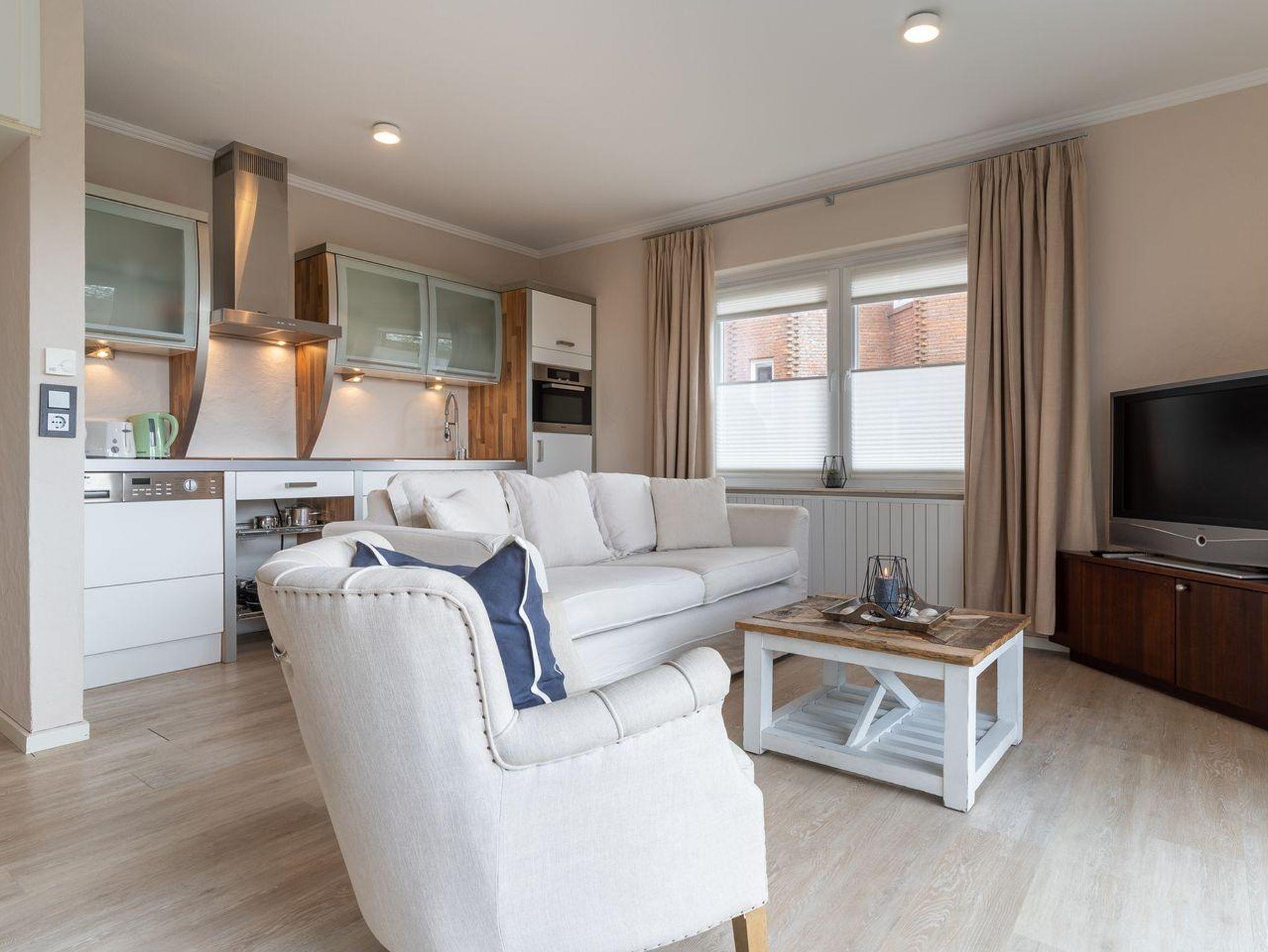 Die gesamte Wohnung ist mit sehr exclusiven Möbeln von Riviera Maison eingerichtet. Ein gemütliches Wohnzimmer mit offener Wohnküche und großzügigen Esstisch laden zum Chillen ein. Das Schlafzimmer mit 160er Doppelbett und Flatscreen TV sorgen für ruhevolle Erholung.