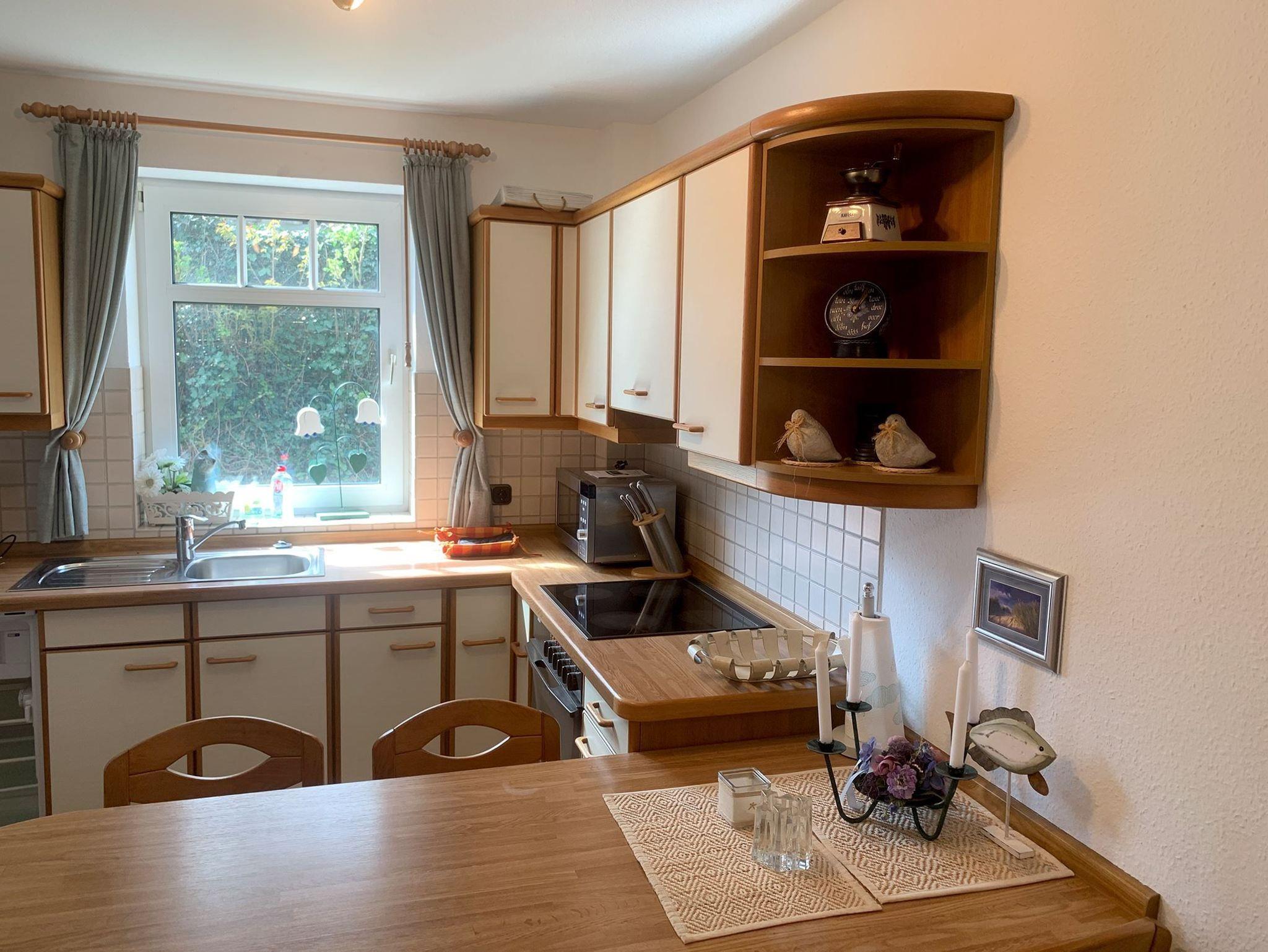 Urlaub von Anfang an Die 3-Zimmer-Ferienwohnung Haus Sturmhaube Nr. 02 im Hochparterre hat alles, was Sie für einen entspannten Urlaub in St. Peter-Ording brauchen: Ausreichend Platz für bis zu 3 Personen, eine Terrasse in Süd-Westlage, die viele Sonnenstunden verspricht und halb überdacht ist. Die Küchenzeile mit Cerankochfeld, Backofen und Mikrowelle ermöglicht Ihnen komfortable Selbstversorgung. In den 2 Schlafzimmern können Sie auf einem Doppelbett oder in den 2 Einzelbetten ausspannen. Bitte nicht im Appartement rauchen.