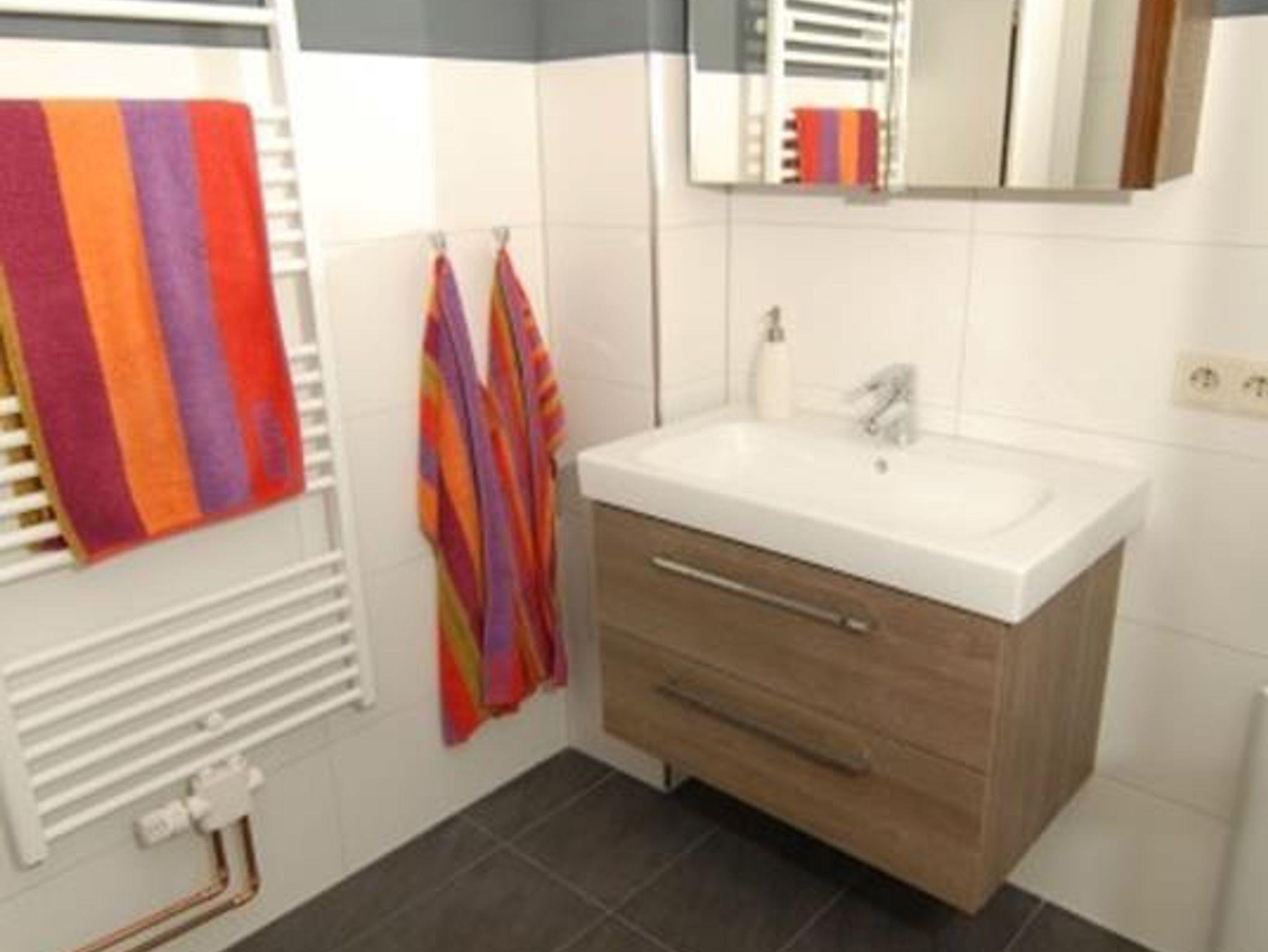 Bad: Dusche, Waschbecken, WC, Schrank, Schränkchen, Duschkabine, Wäscheständer, Staubsauger