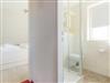Badezimmer (Duschbad) mit Dusche, WC, Föhn und Tageslicht.