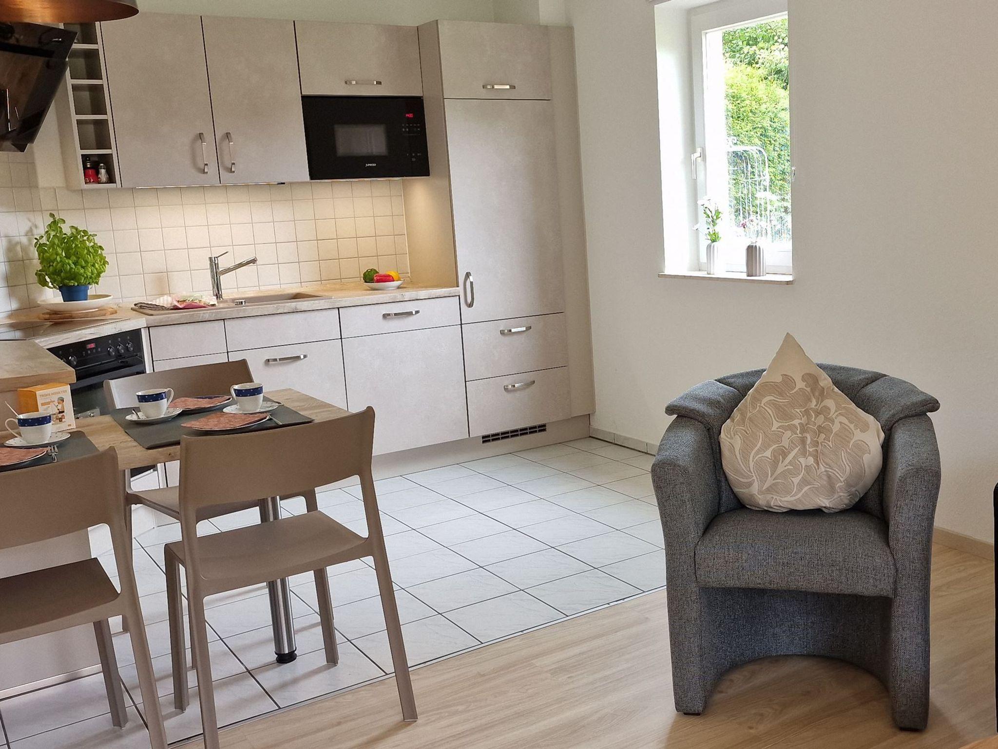Küchenausstattung: Die großzügige Küchenzeile ist mit einem 4-Plattenherd und einem Backofen ausgestattet und bietet alles, was Sie für eine angenehme Selbstverpflegung benötigen.