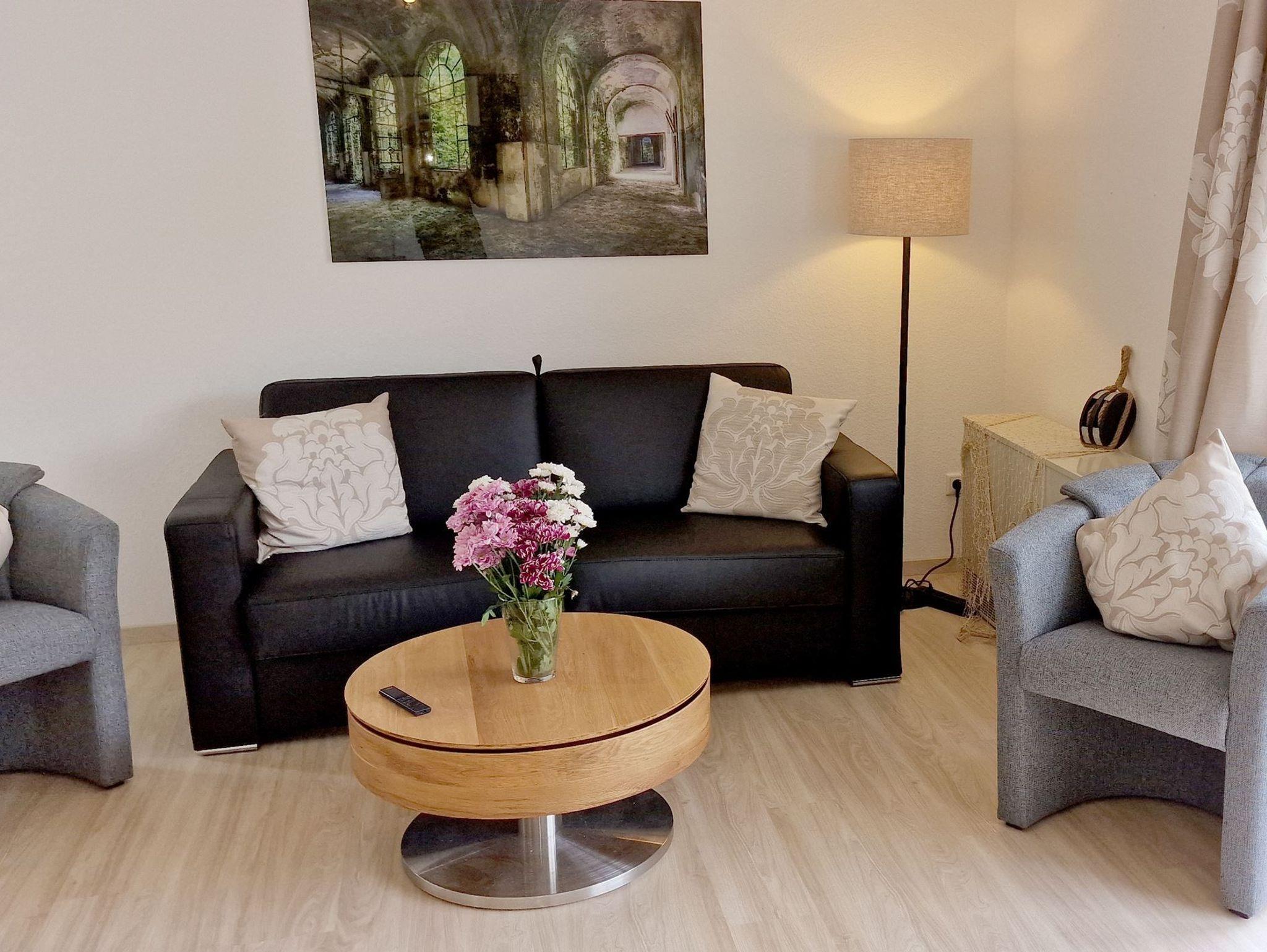 Schlafmöglichkeiten: Die Wohnung bietet ein komfortables Schrankdoppelbett im Wohnzimmer und ein separates Schlafzimmer mit 2 Einzelbetten.